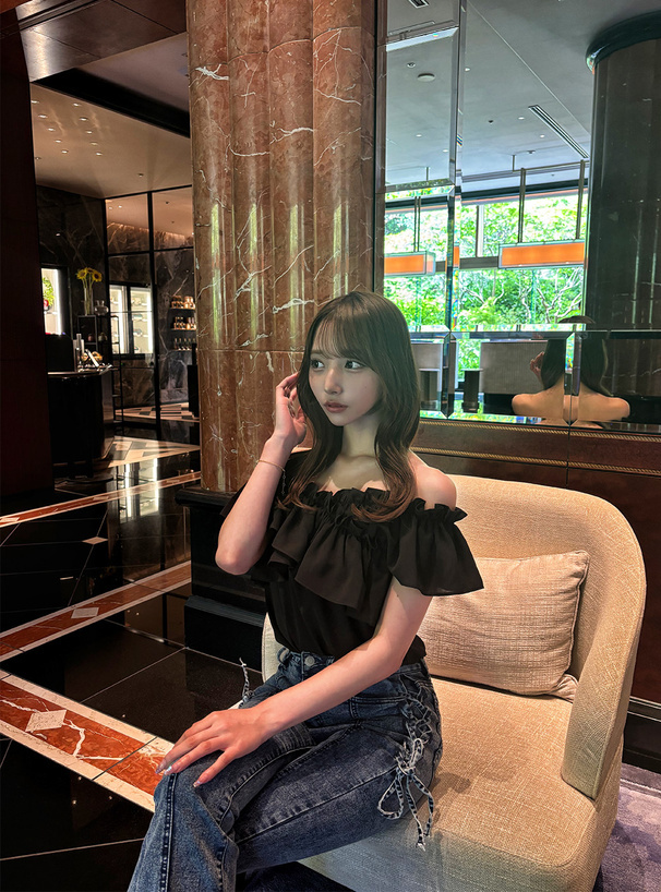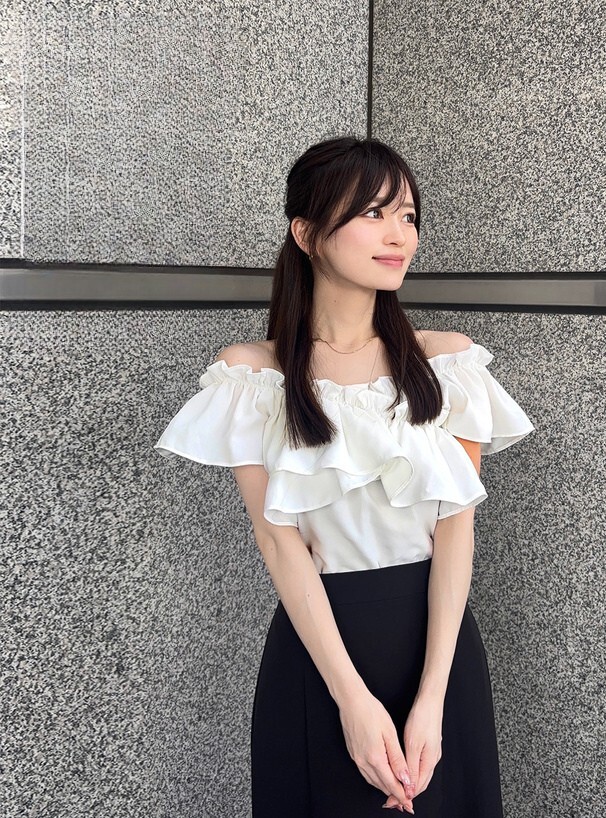 雙層交叉荷葉設計讓肩頸線條更迷人