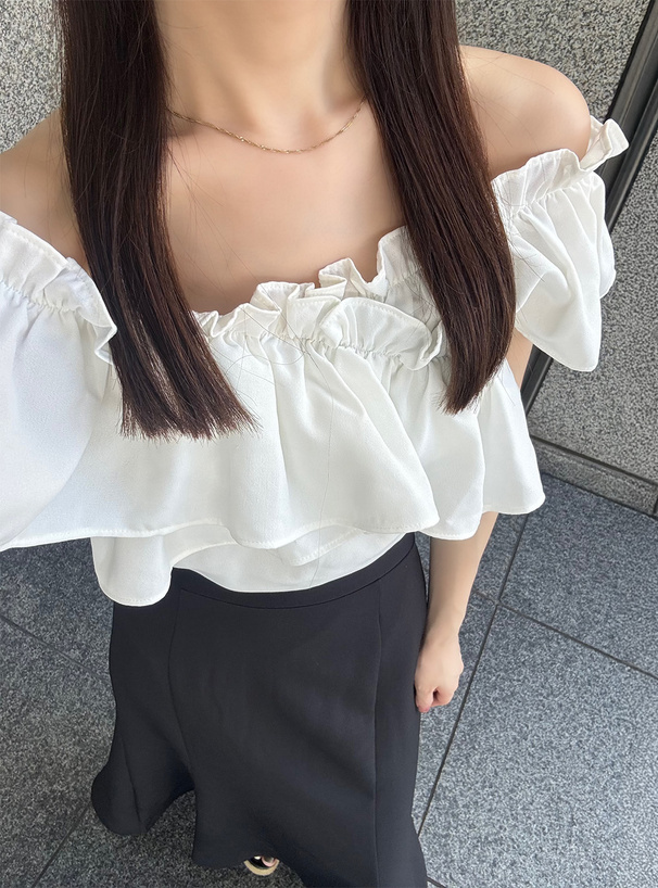 尺寸 (CM):衣長52/胸寬37/領口寬36/荷葉邊長11.5