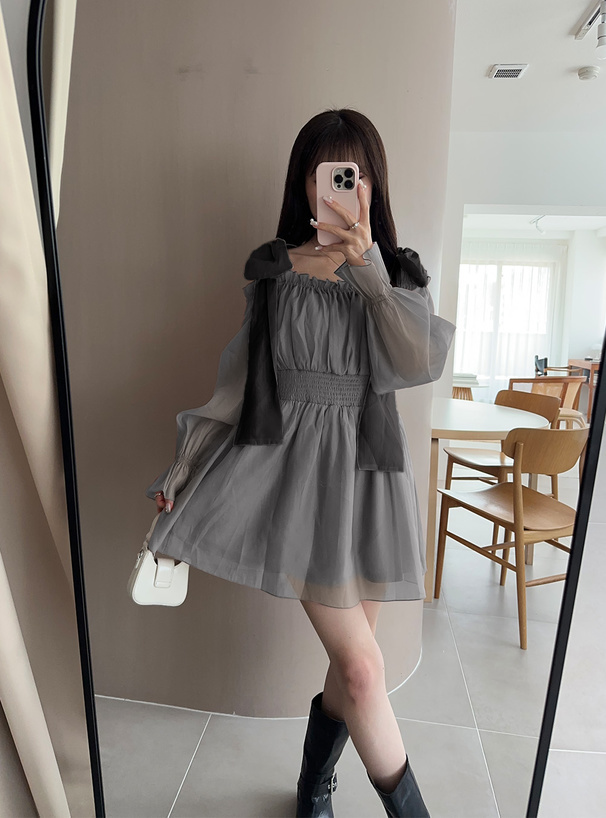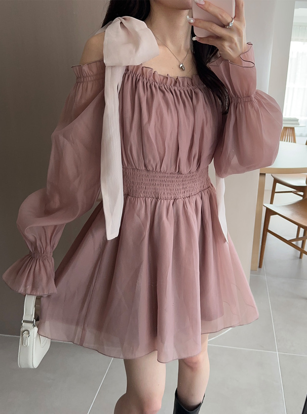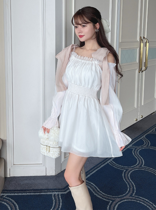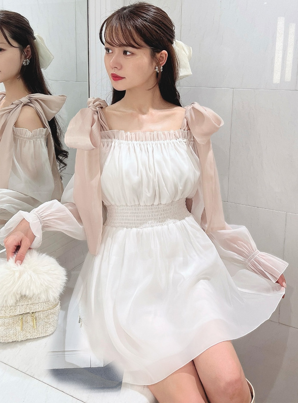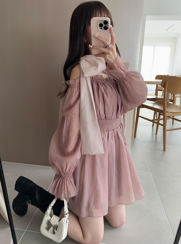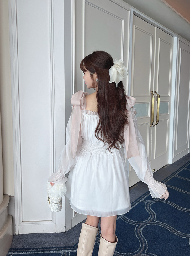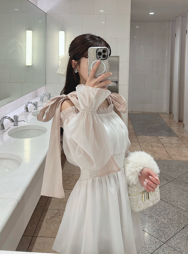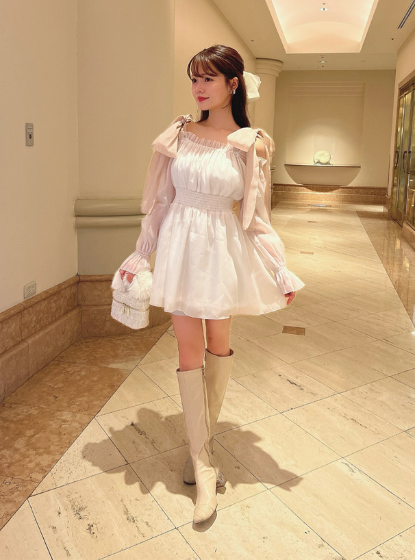 大大的綁結緞帶 讓肩部鎖骨線條更迷人