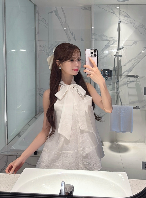 前綁大蝴蝶結展現甜美可愛