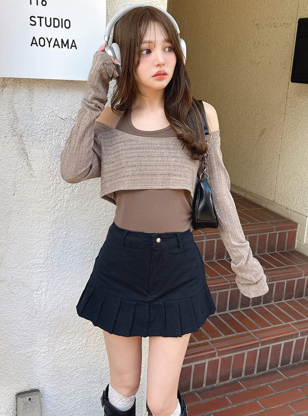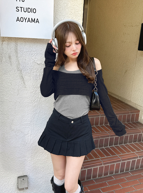 這款是透膚感羅紋長袖與綁脖背心的兩件式組合