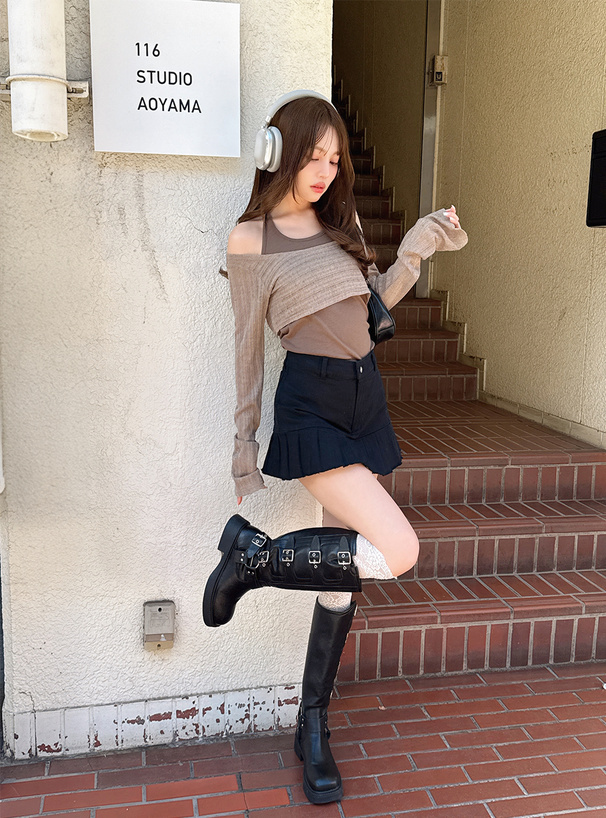 無論配高腰短裙、牛仔褲或吊帶裙都很match