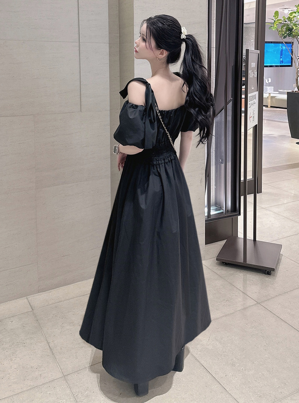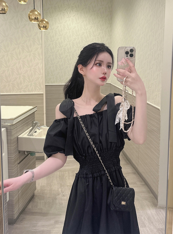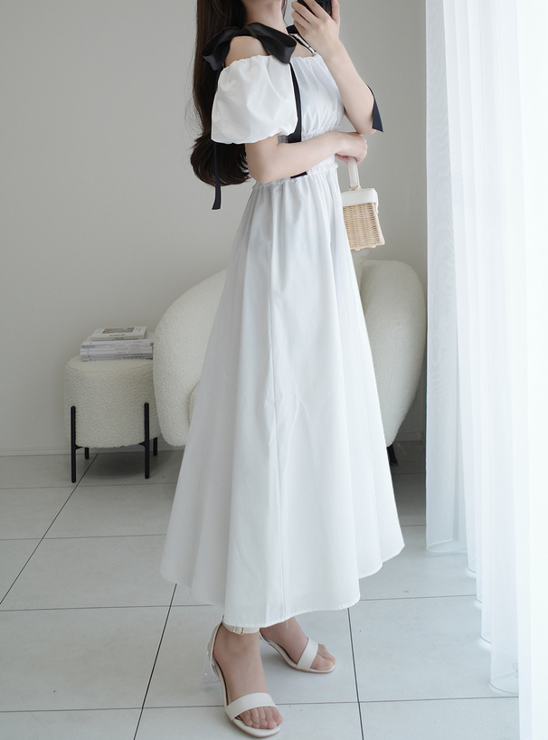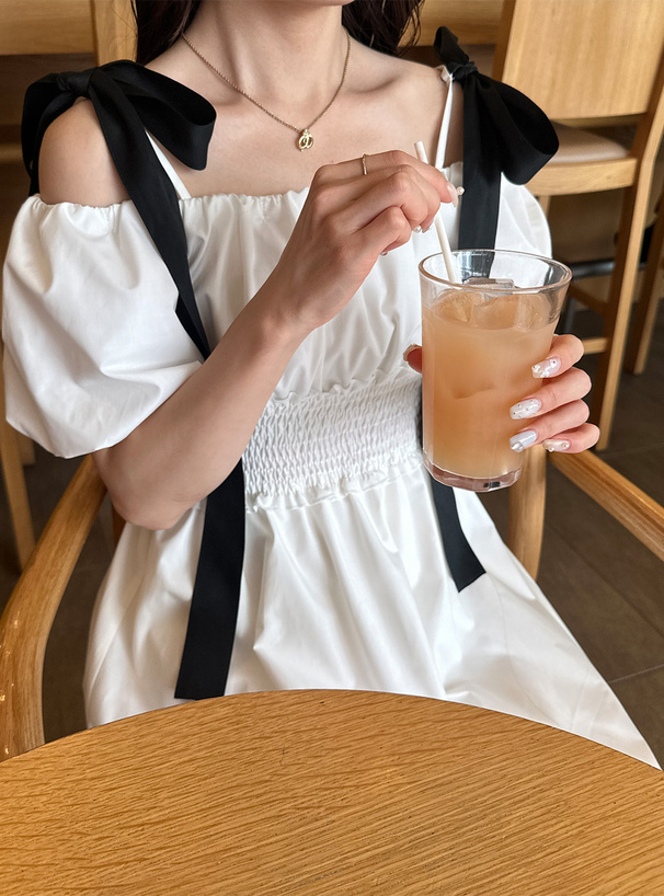 結合夢幻泡泡袖和可拆式大蝴蝶結肩帶