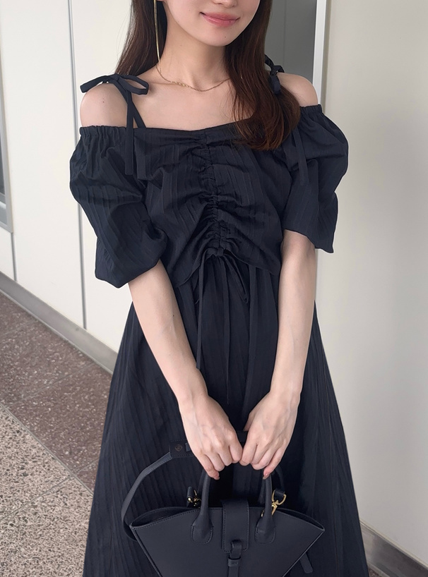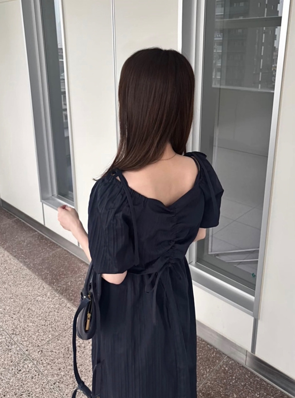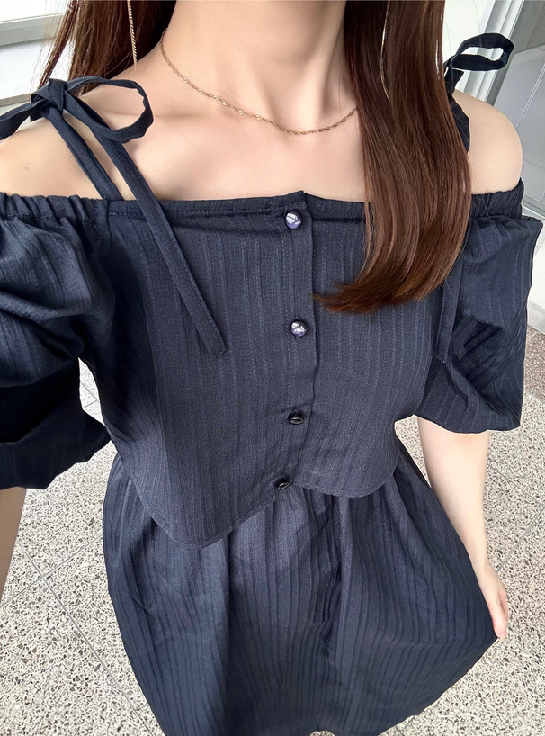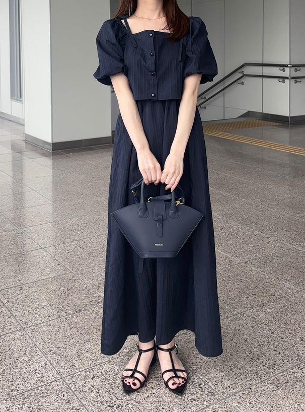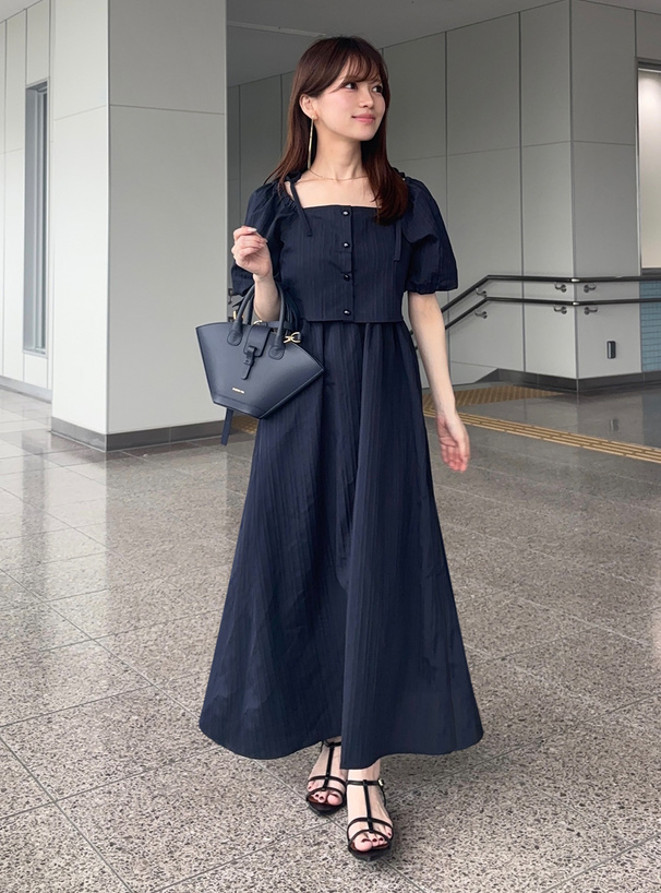 內搭的吊帶洋裝則有綁帶設計可調整長度