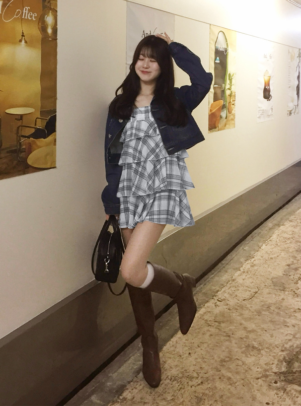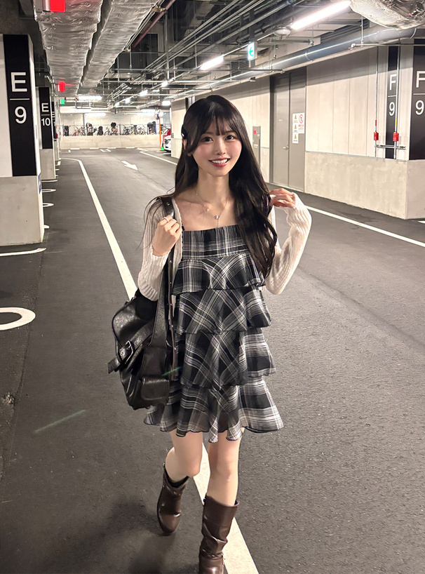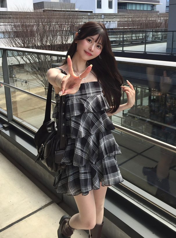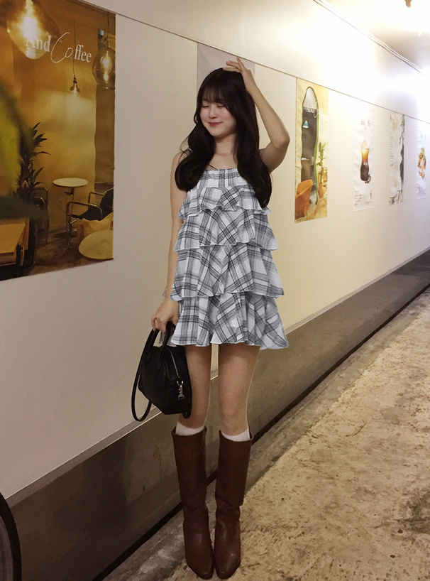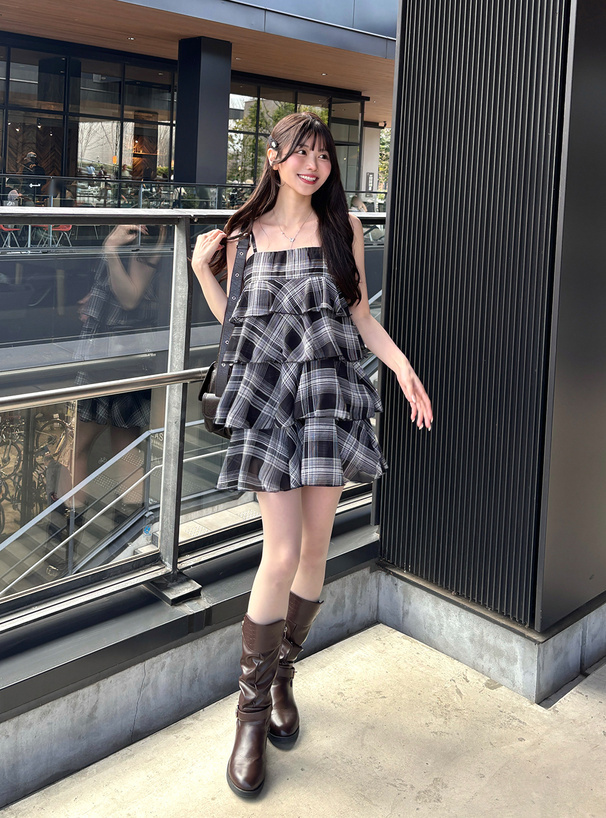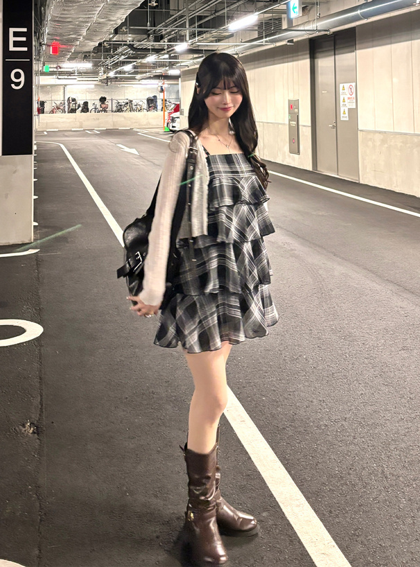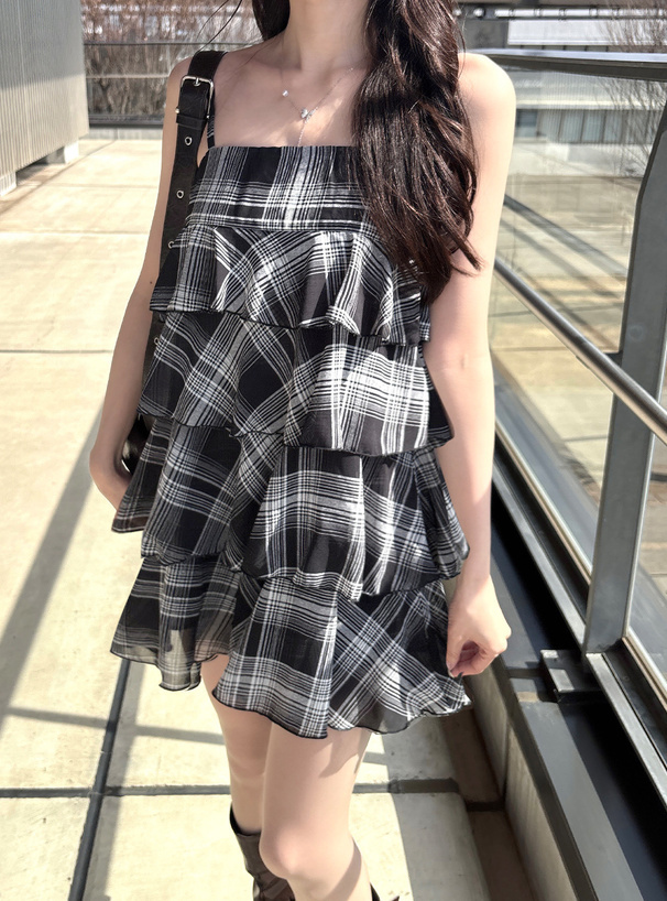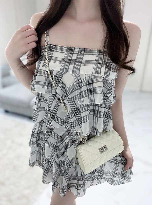 層層堆疊的荷葉設計搭配輕盈格紋紗感材質