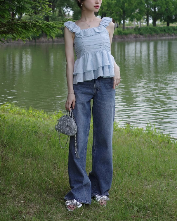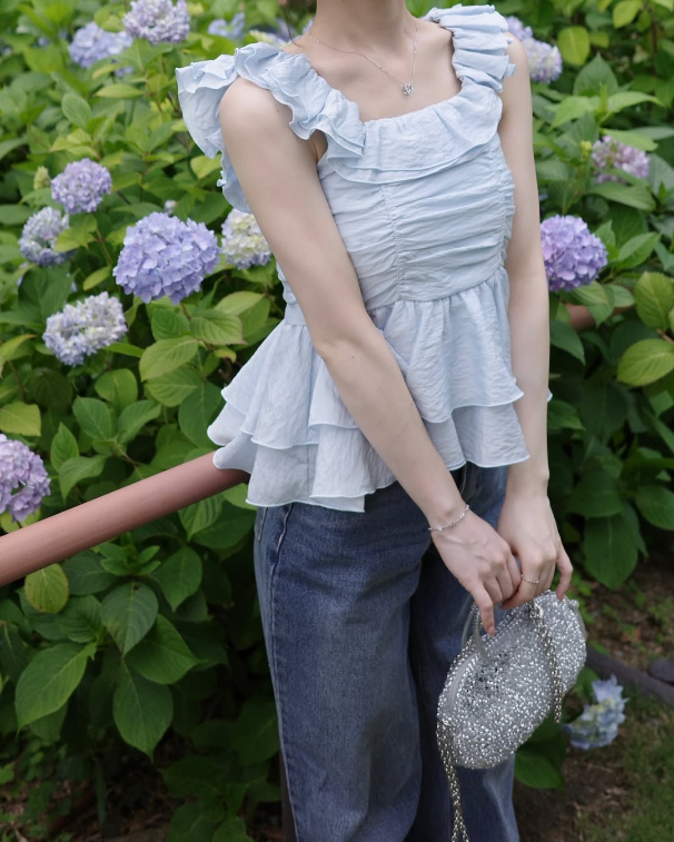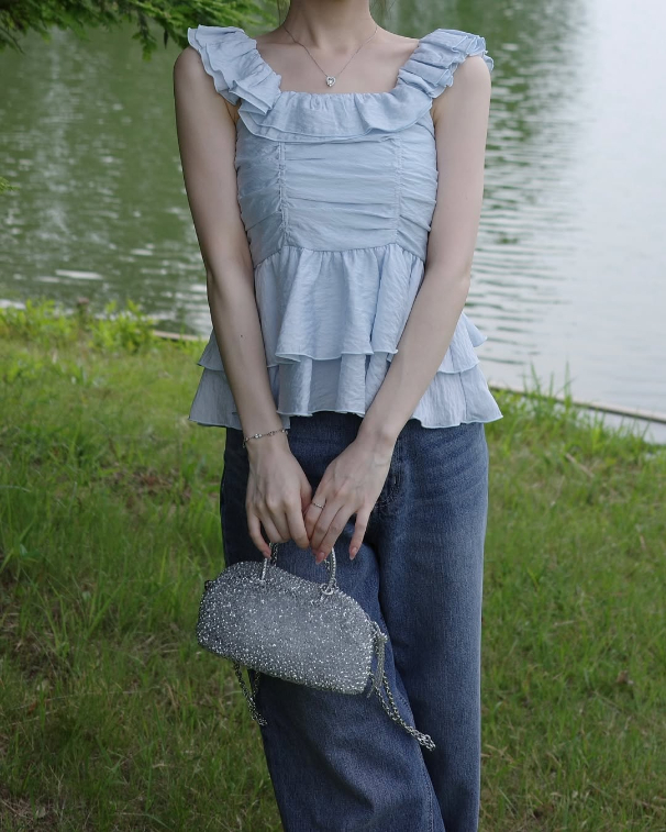 領口與下襬都使用雙層蛋糕荷葉邊
