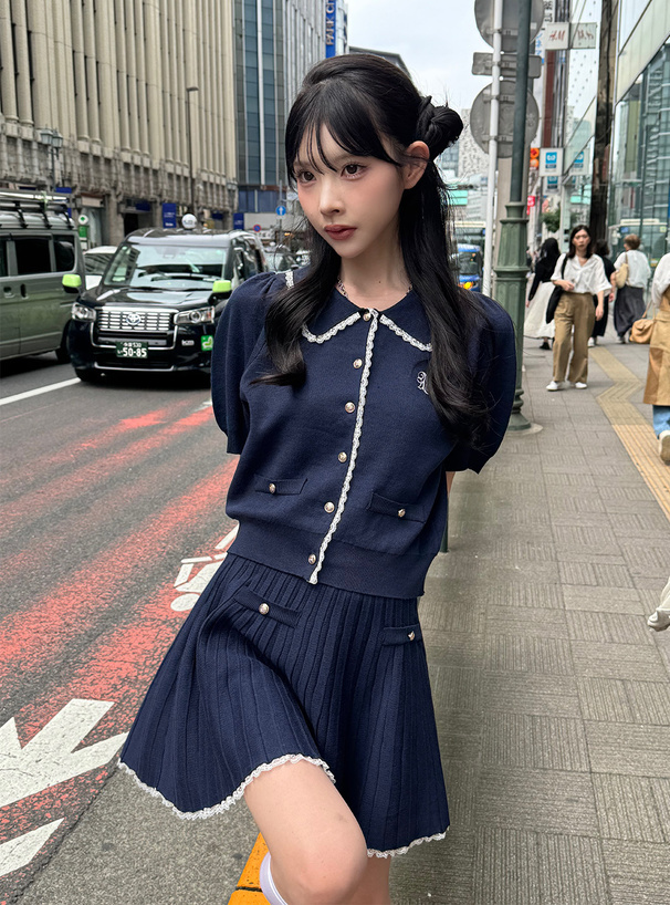 特別以蕾絲滾邊娃娃領、金釦裝飾、織紋細節加分