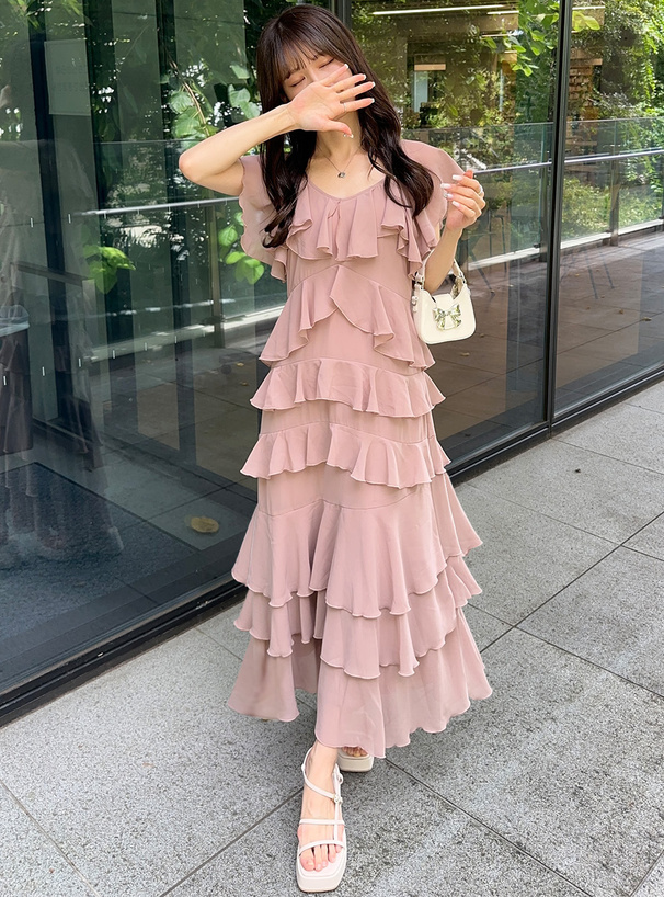 滿滿荷葉層層堆疊的浪漫洋裝來啦♡
