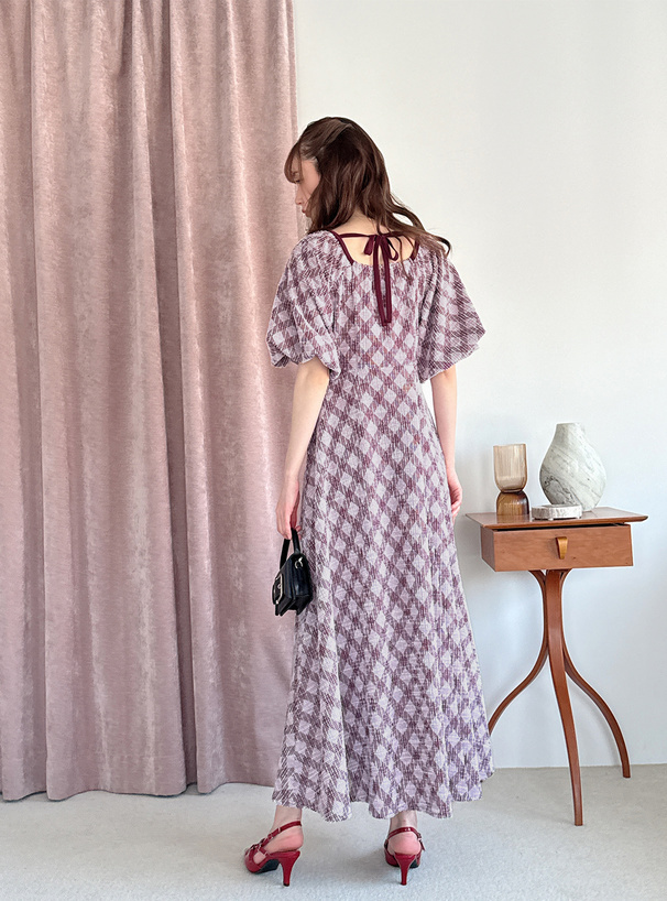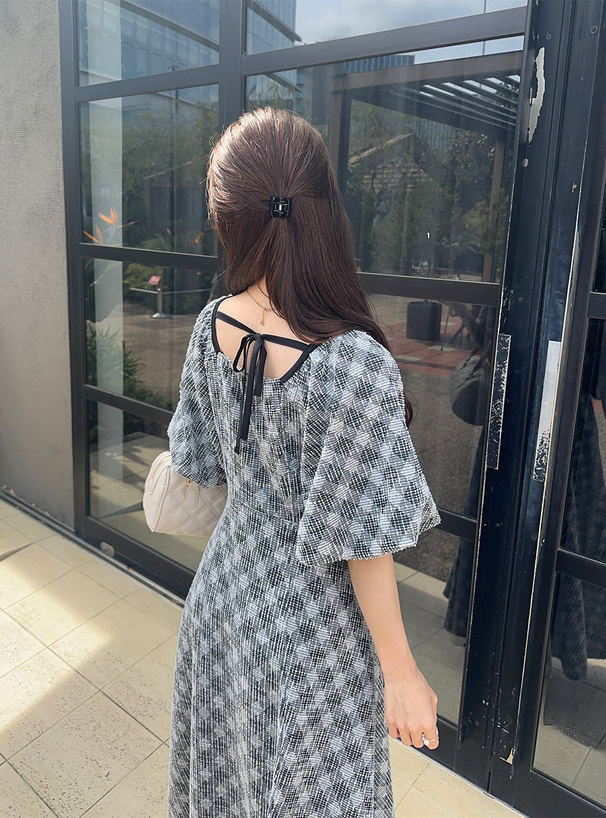 搭配蓬鬆感的泡泡袖與綁帶後背細節