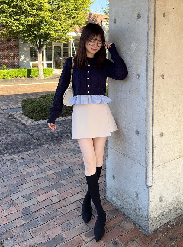 下擺拼接襯衫布料荷葉邊,甜中帶點優雅