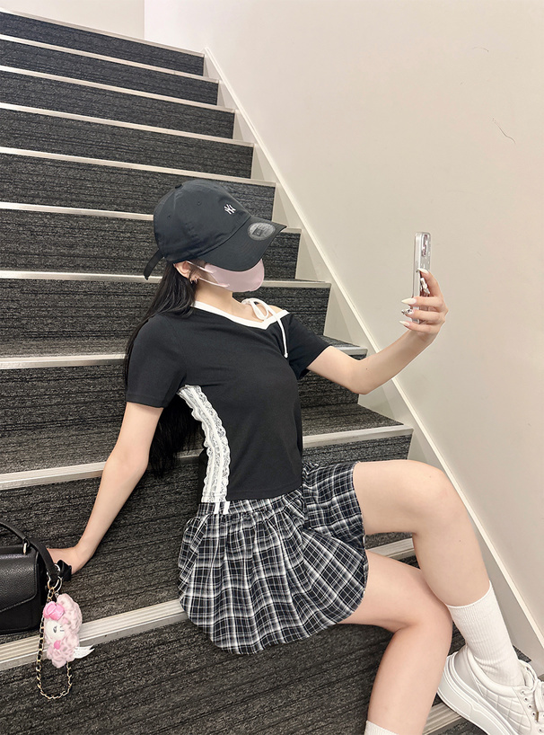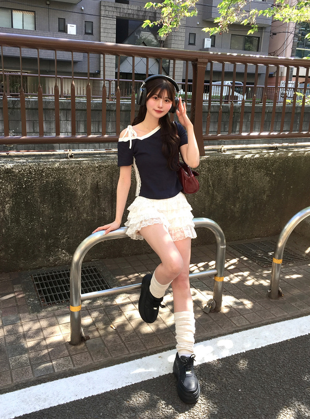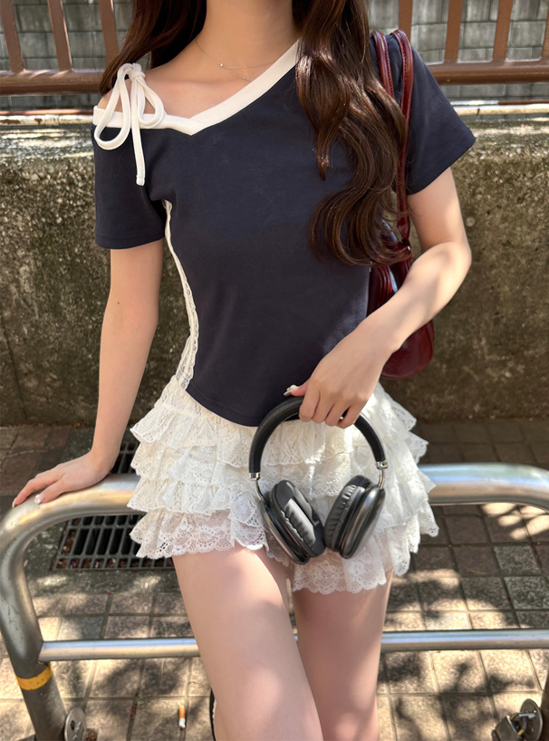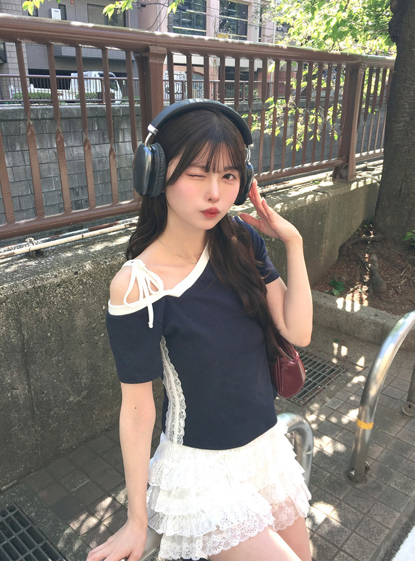 搭配撞色滾邊與微微透膚的蕾絲點綴