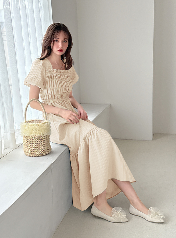 寬版的彈性抓皺剪裁讓腰身自然顯瘦