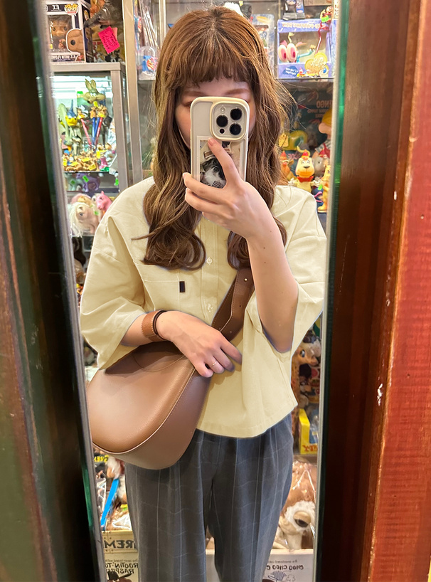 寬鬆版型與七分寬袖讓整體更有慵懶隨性的氛圍