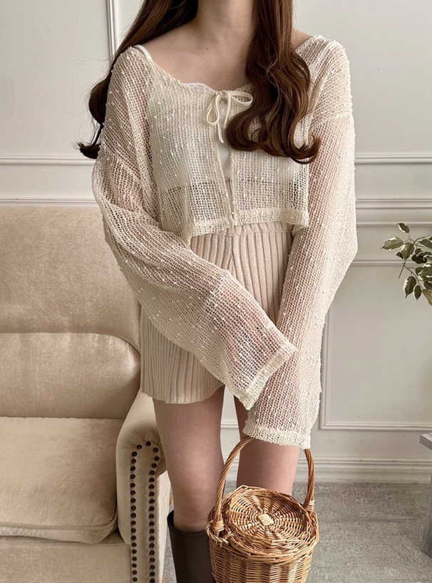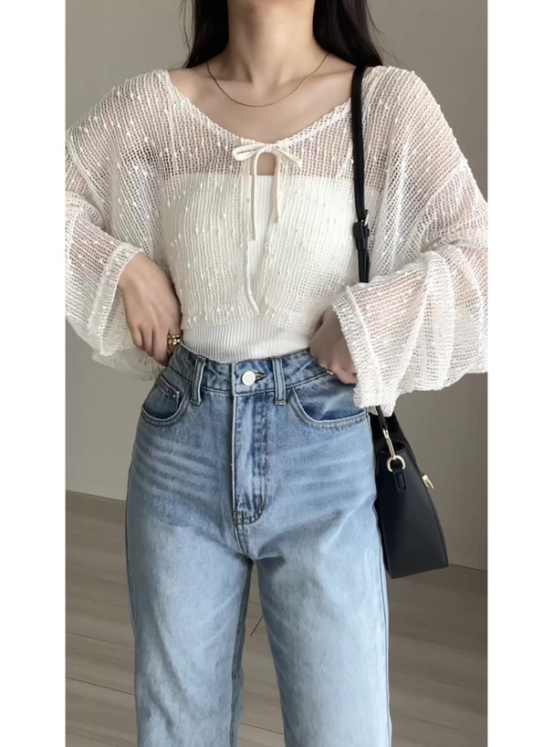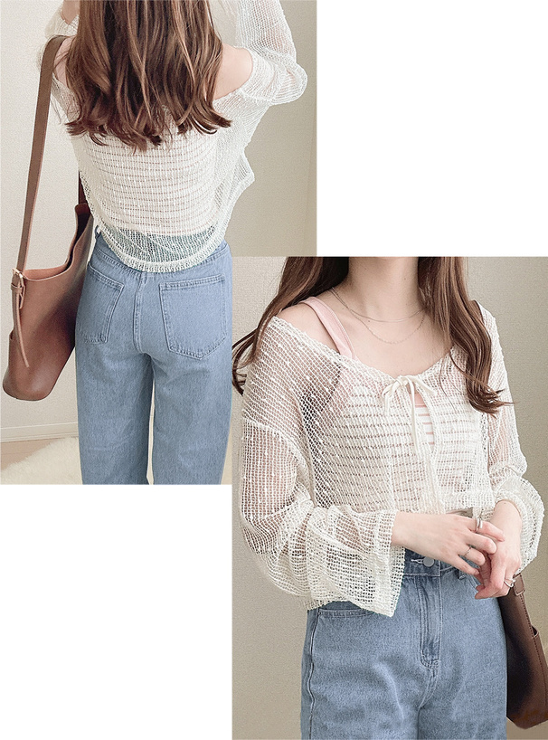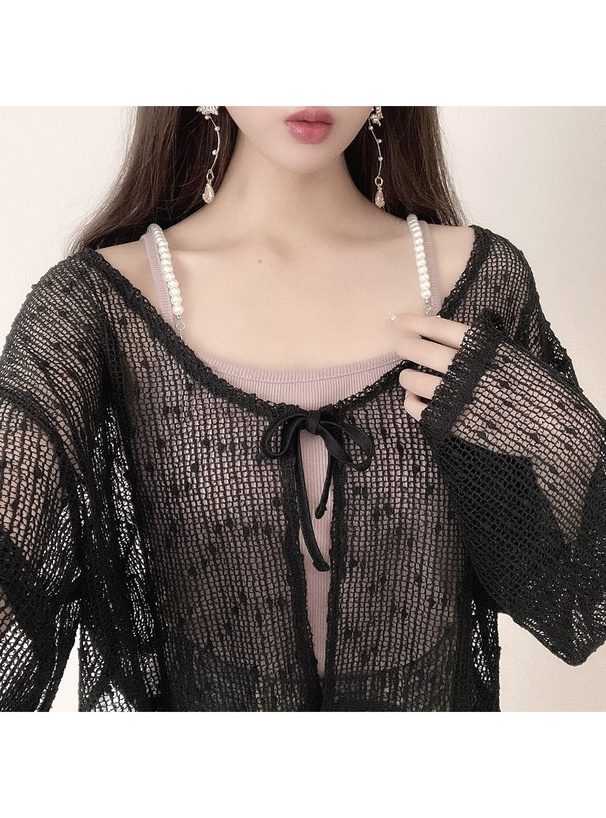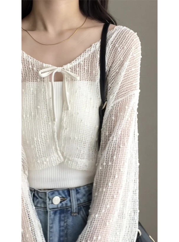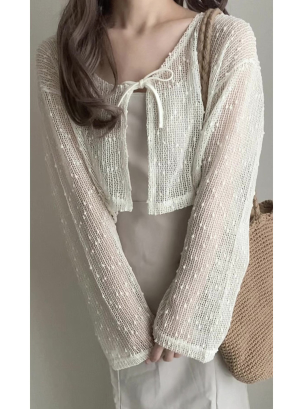 小清新的網眼點點罩衫 胸前領結超可愛💕