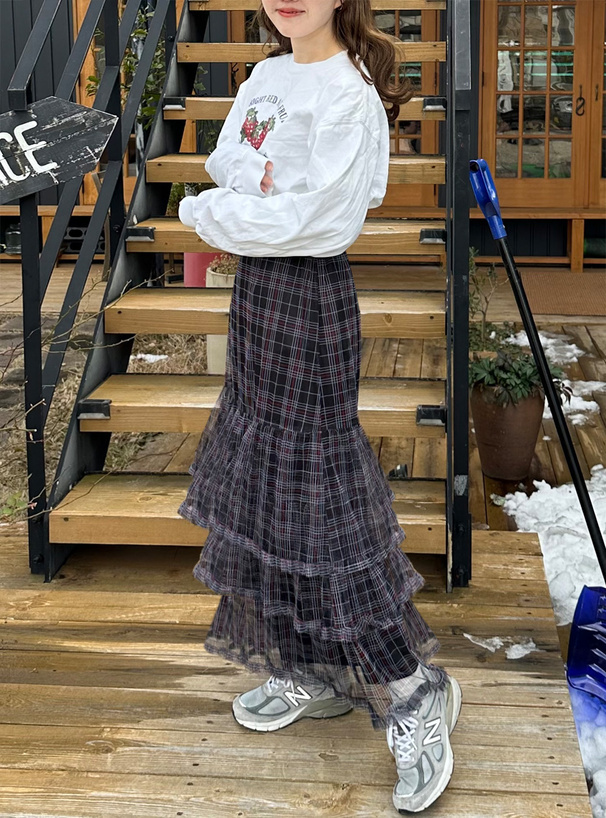 復古格紋碰上柔美網紗