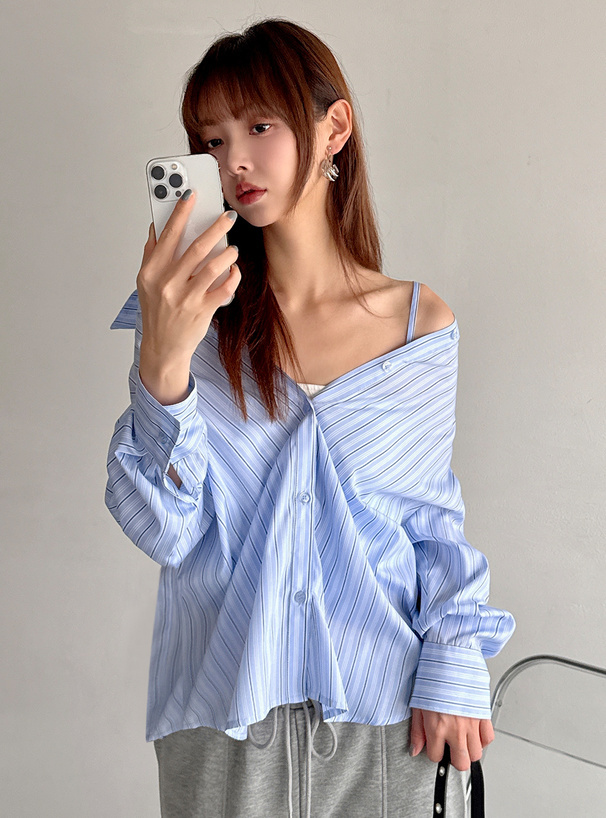 這件條紋設計的多way造型襯衫真的超有變化感✨