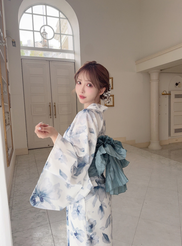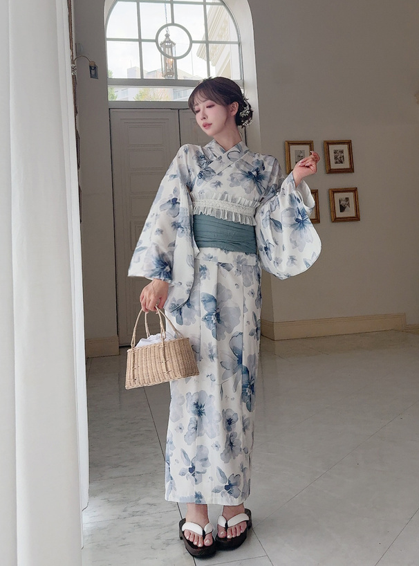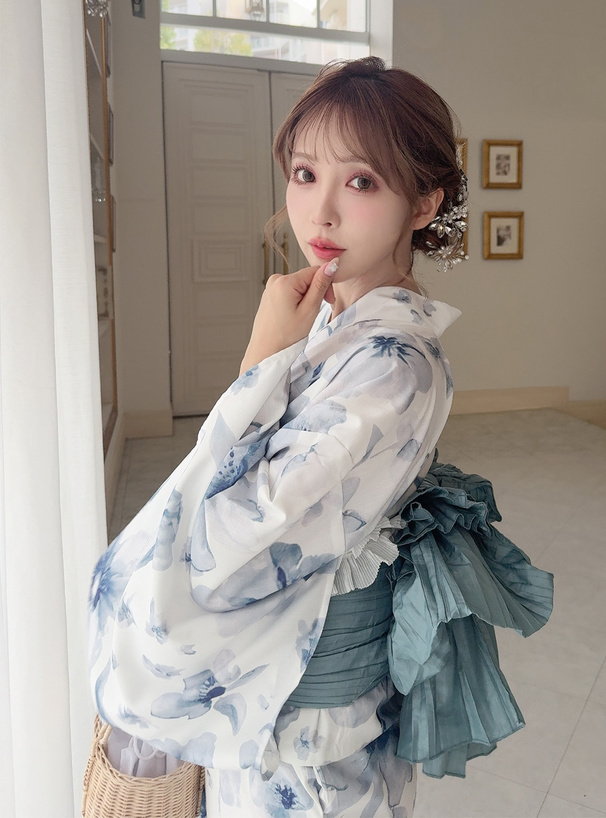 這套浴衣洋裝組以水彩筆觸描繪大花圖案