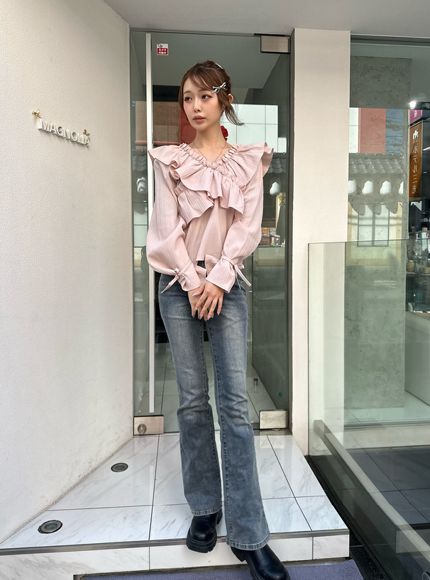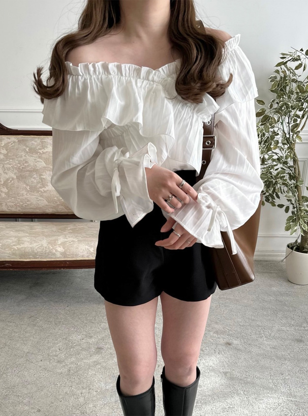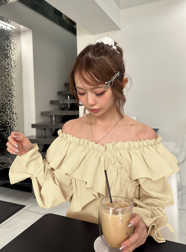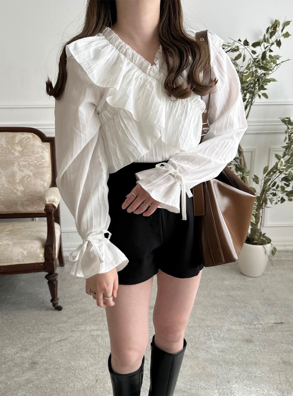結合大份量斜交荷葉與袖口綁帶設計,細節滿分!