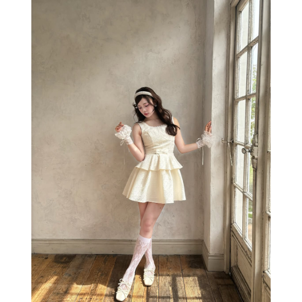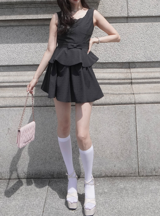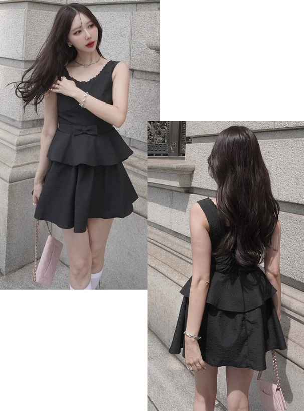 胸型立體剪裁搭配腰間同布蝴蝶結