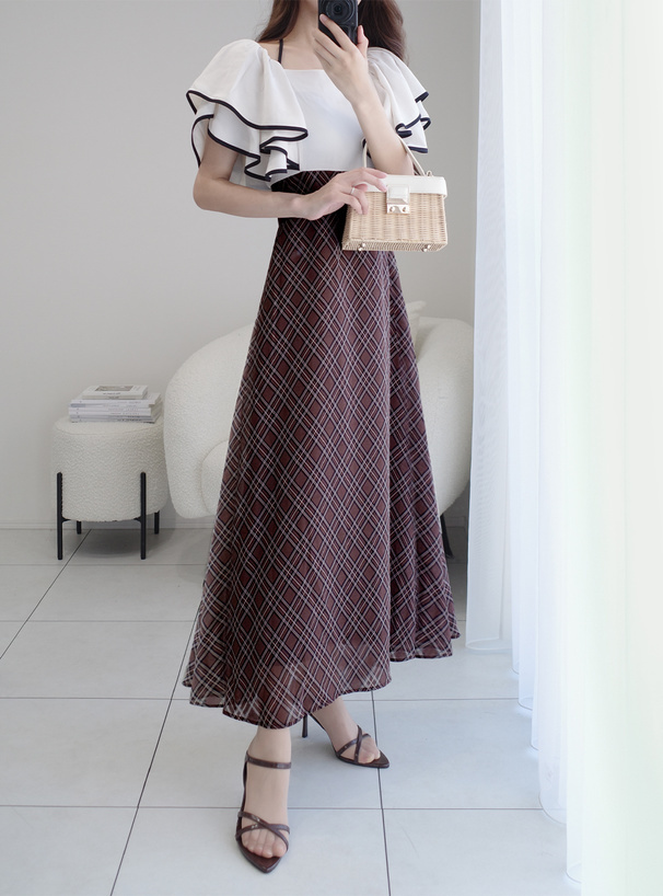 高腰接片延伸出飄逸的格紋A字裙
