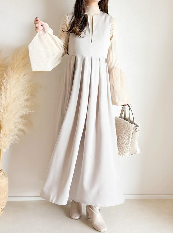 垂墜百褶裙襬隨步伐輕盈搖曳