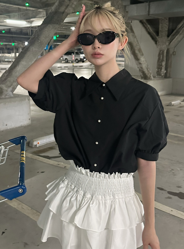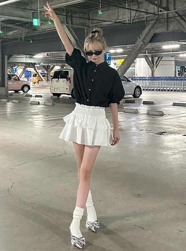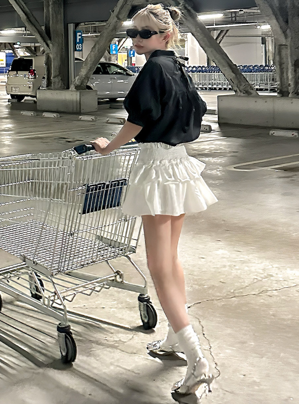 這件後綁帶泡泡袖襯衫,從正面甜到背影~