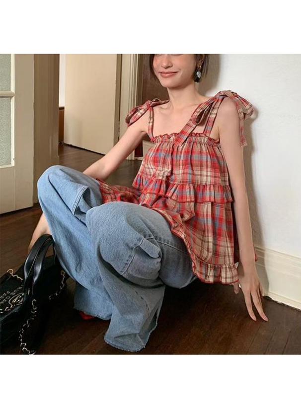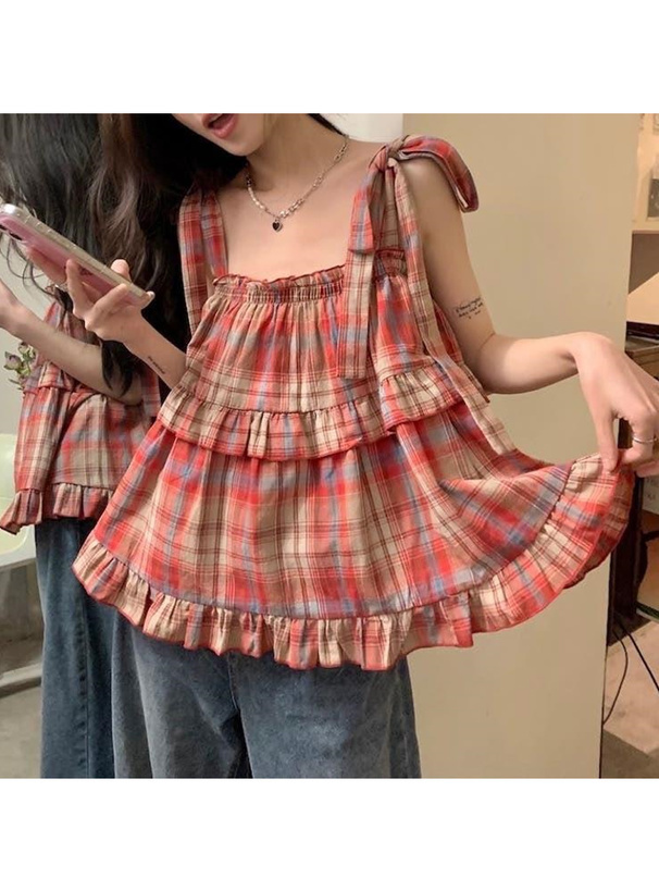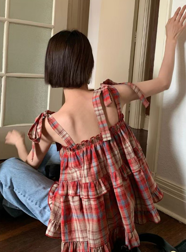 柔和的格紋配色加上層層蛋糕裙擺設計