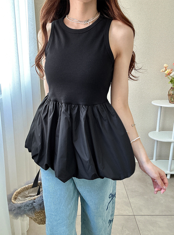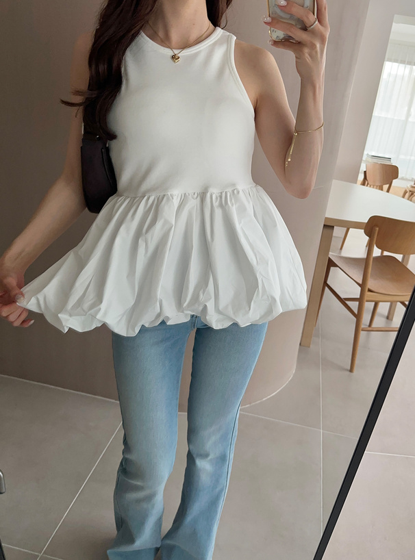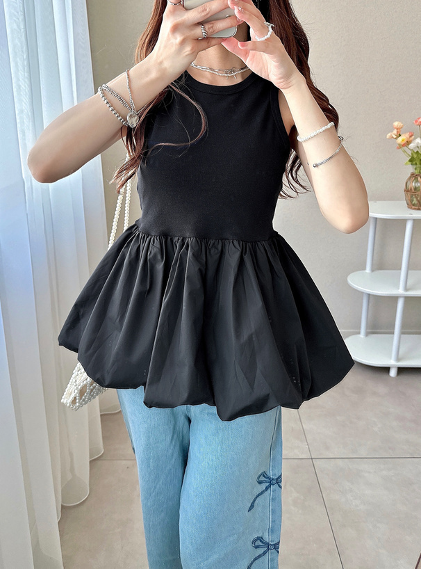 這件上衣結合了舒適的彈性棉質與立體感布料