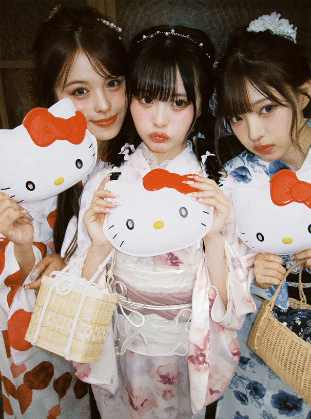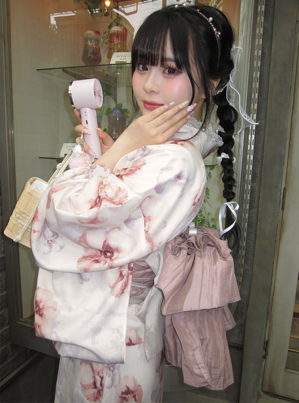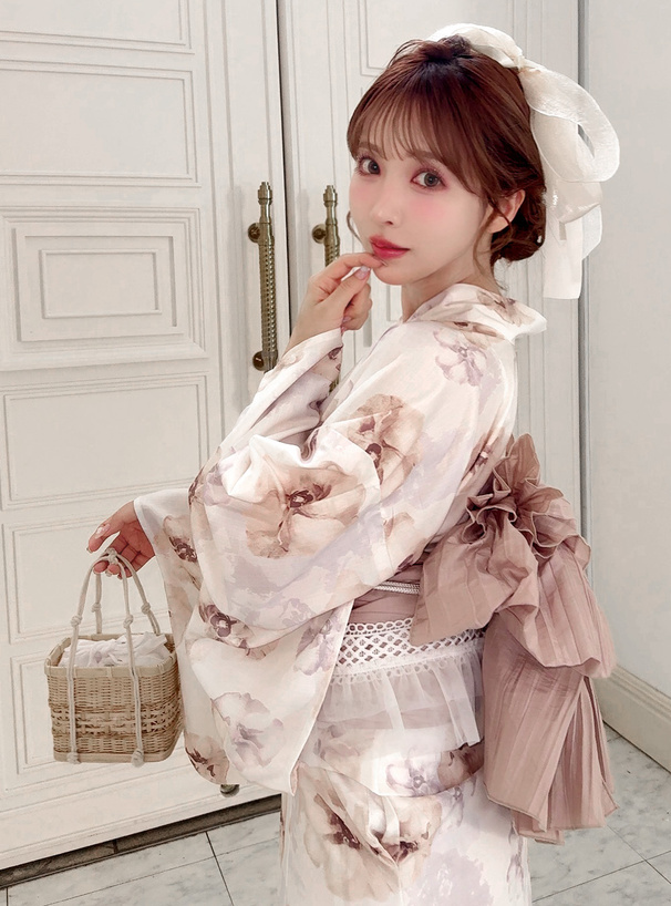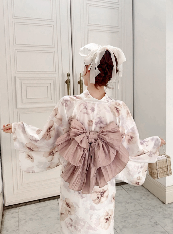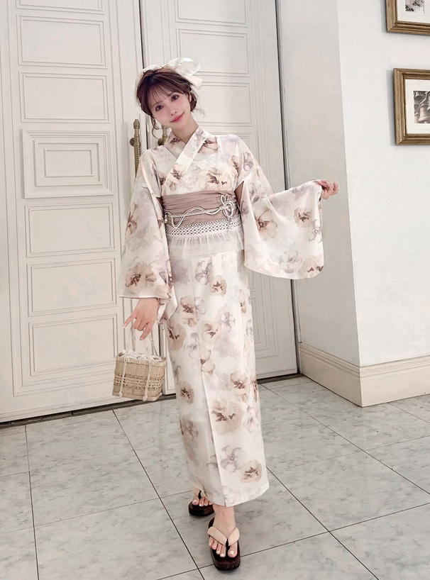 這款浴衣洋裝組以柔霧感白底搭配手繪風大花
