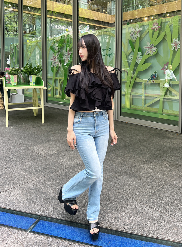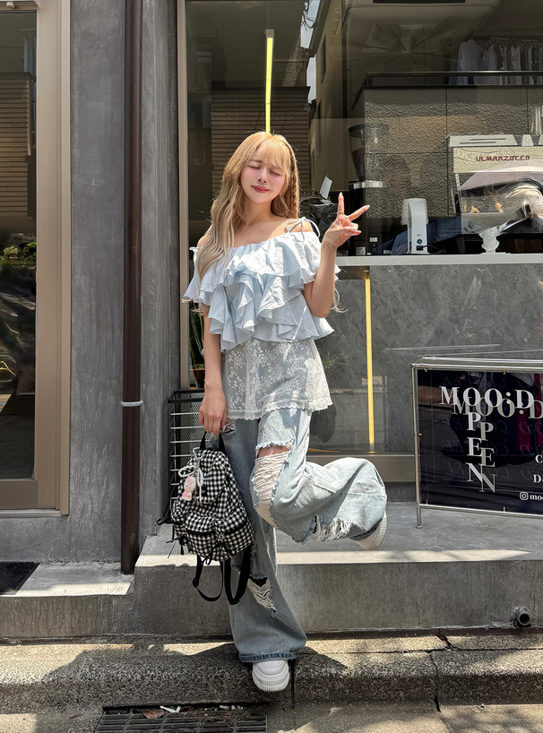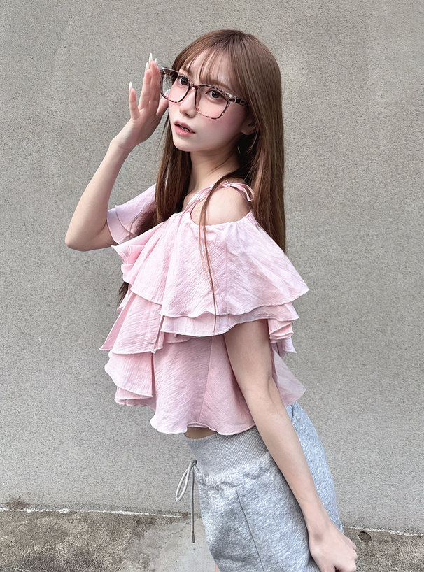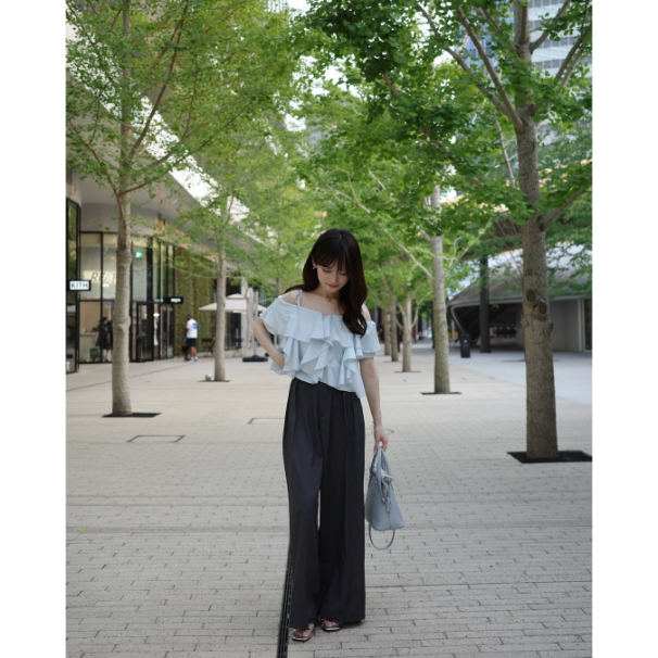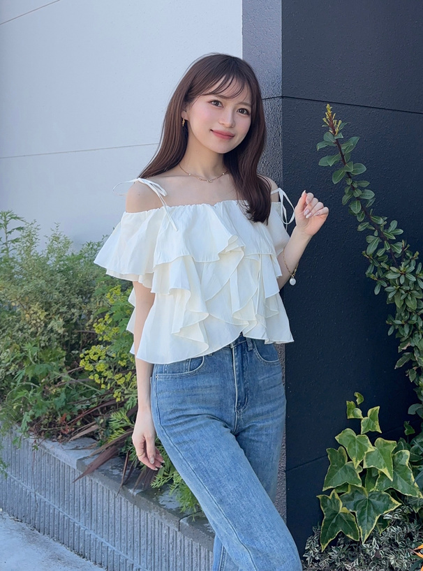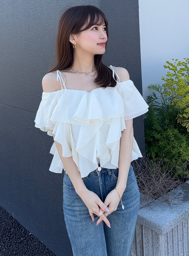 細肩綁帶搭配層層浪漫荷葉