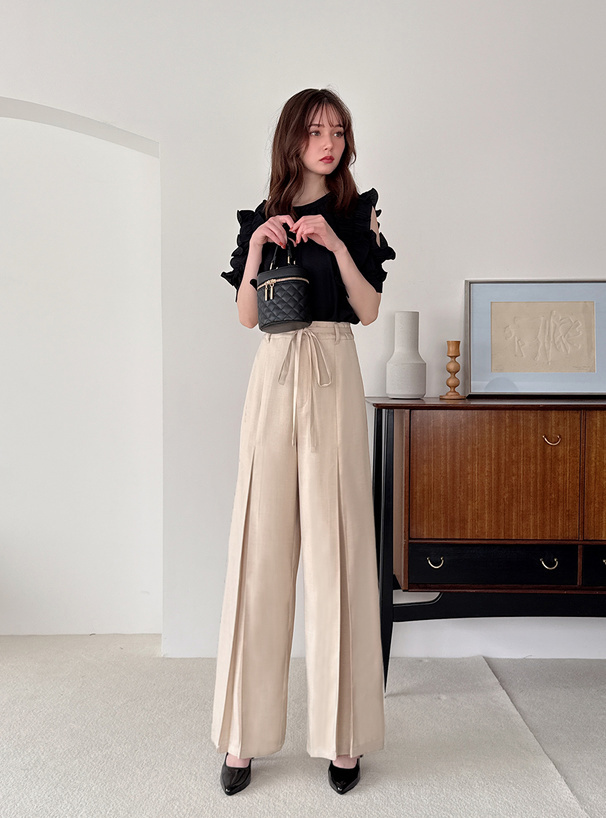 褲頭附綁帶設計,不只能收腰,還多了點柔美感