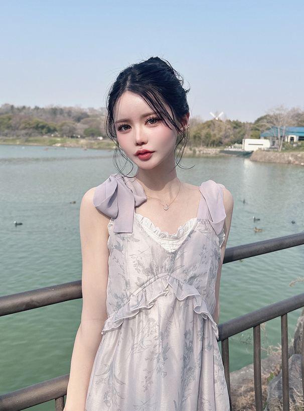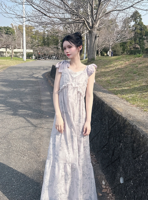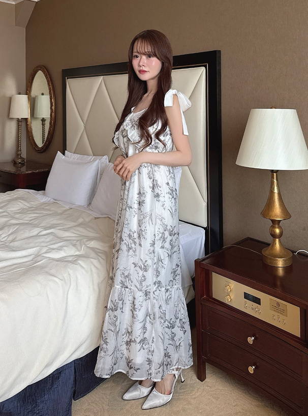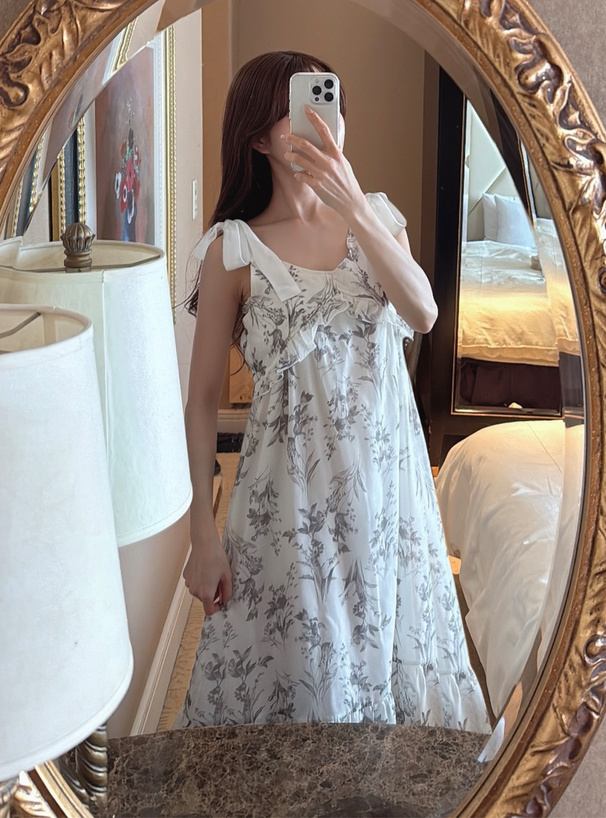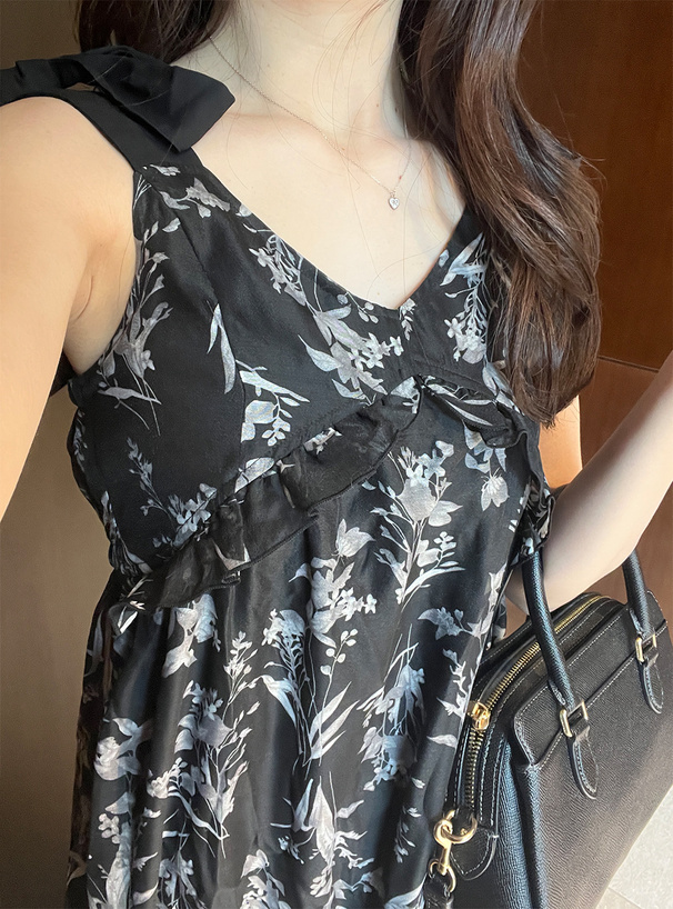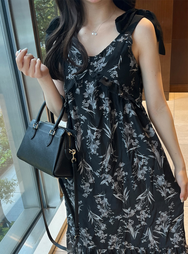 這款吊帶洋裝以柔滑輕盈的材質搭配花卉印花
