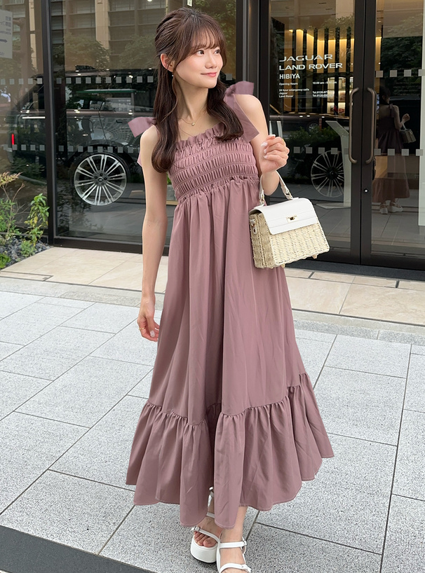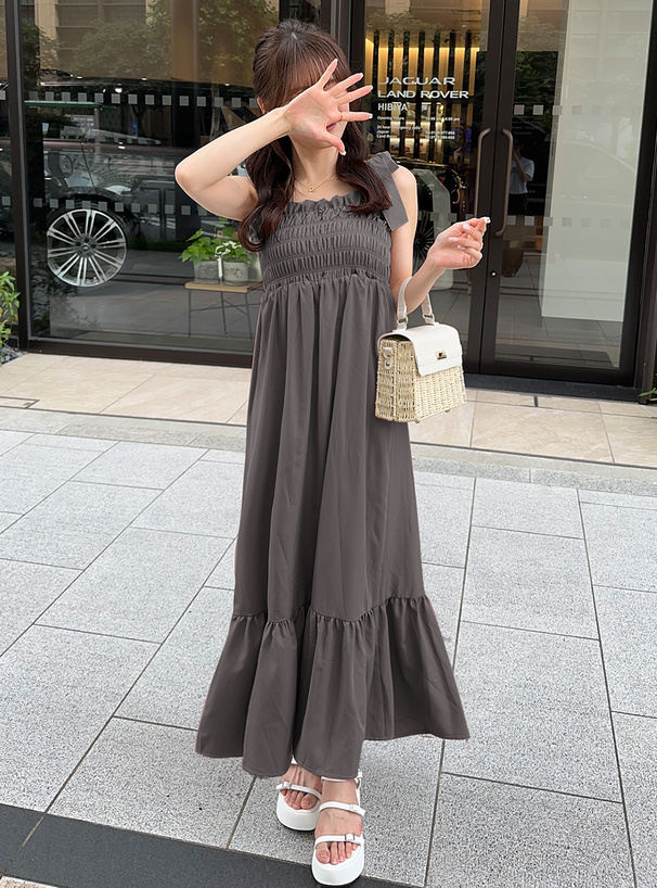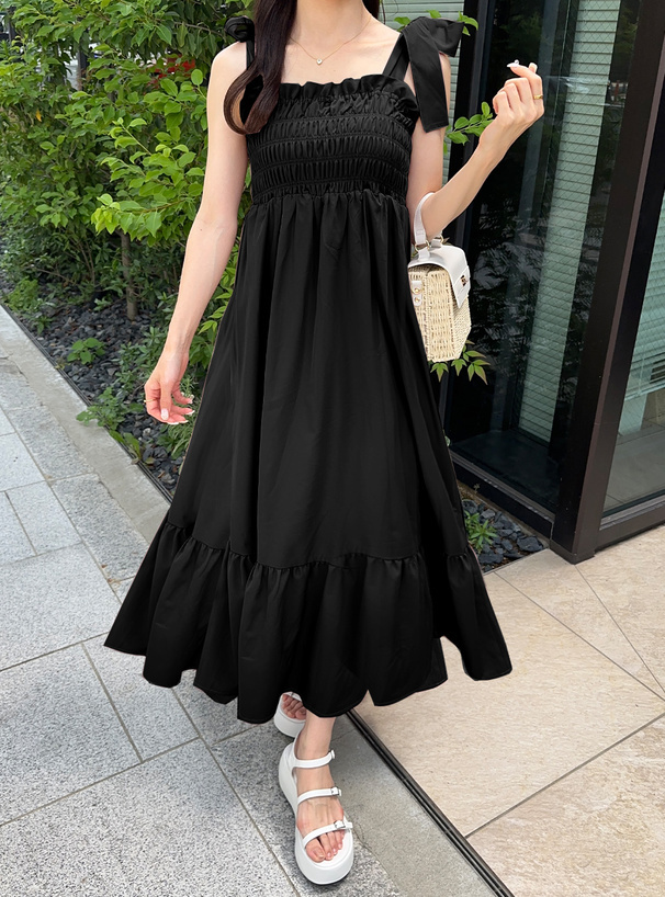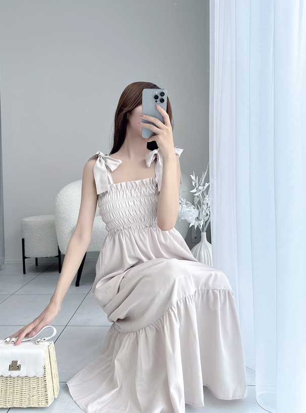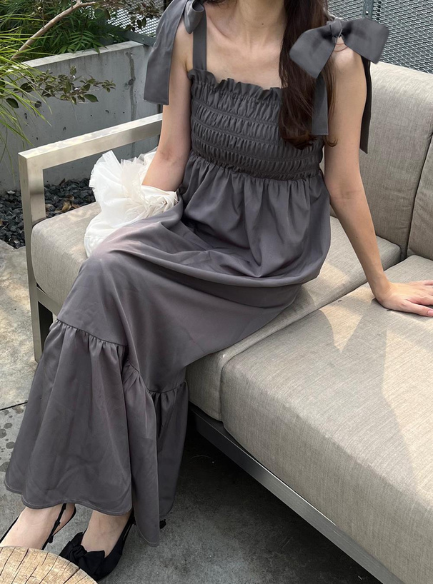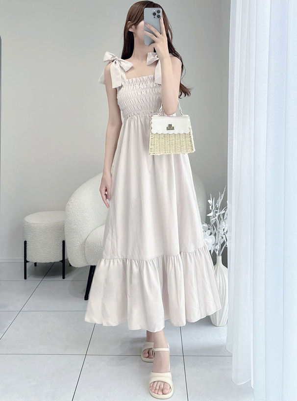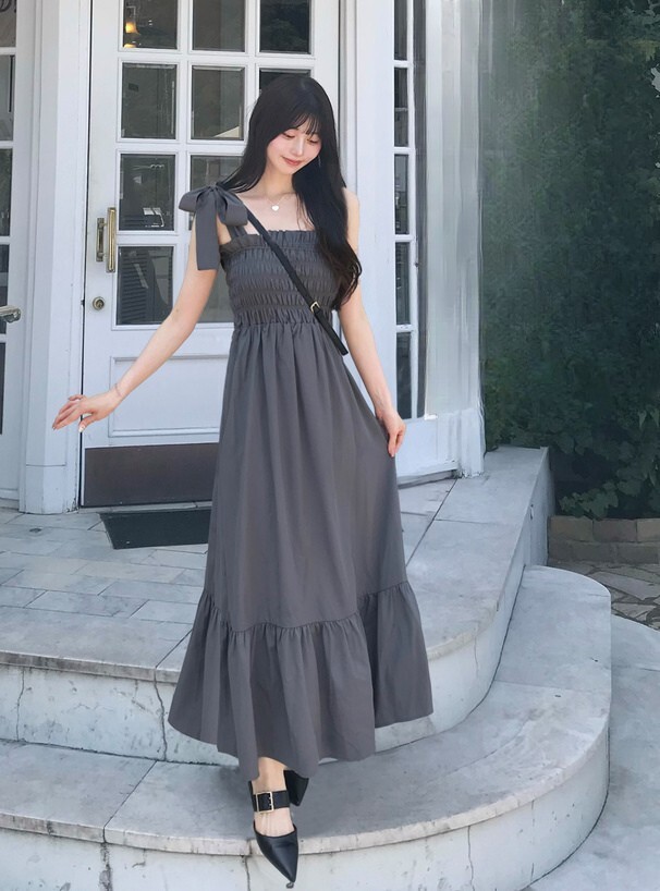 這件是甜美度滿點的綁帶吊帶長洋裝!