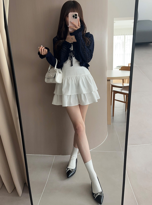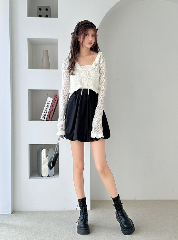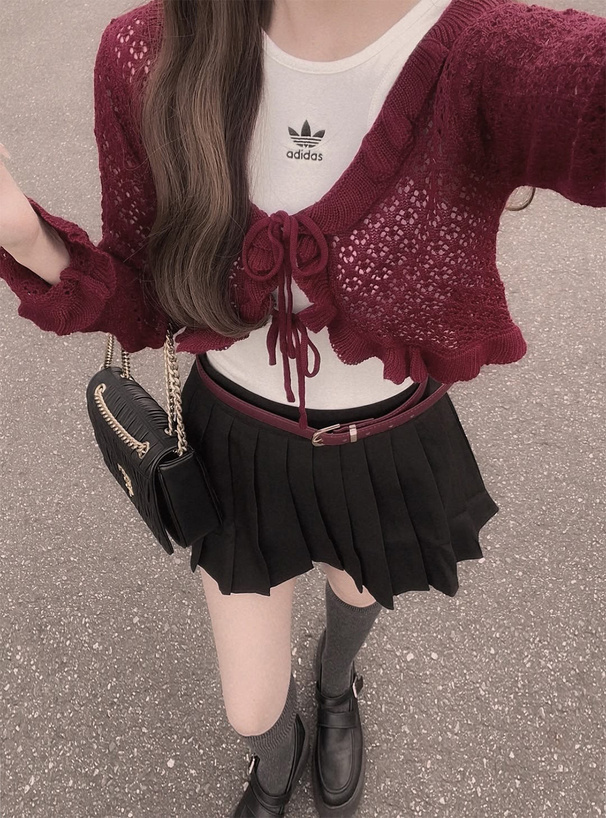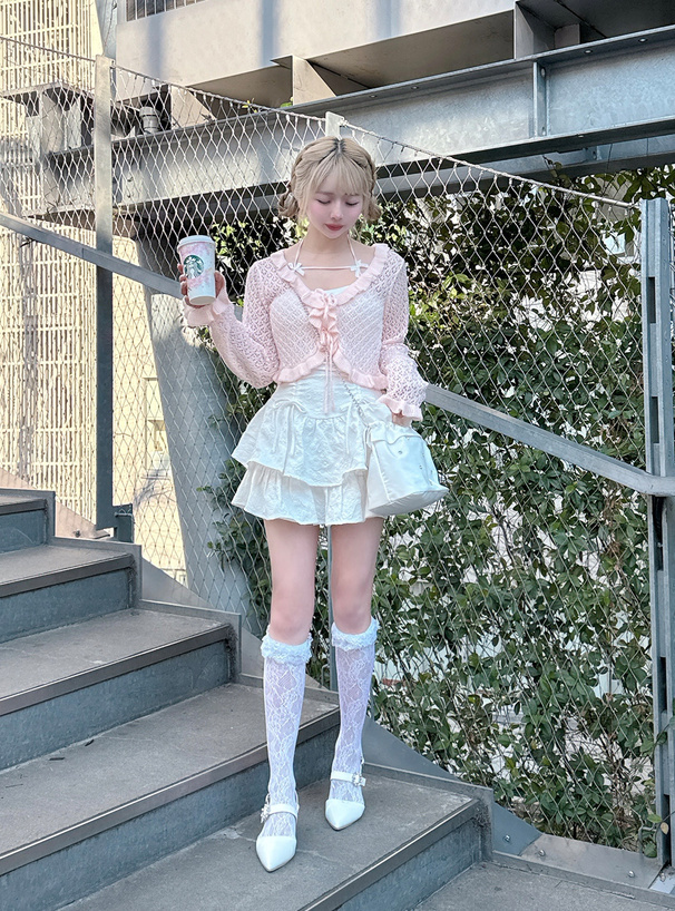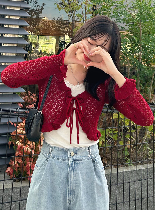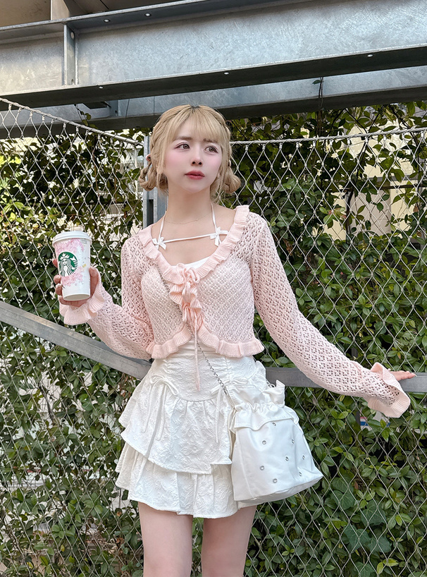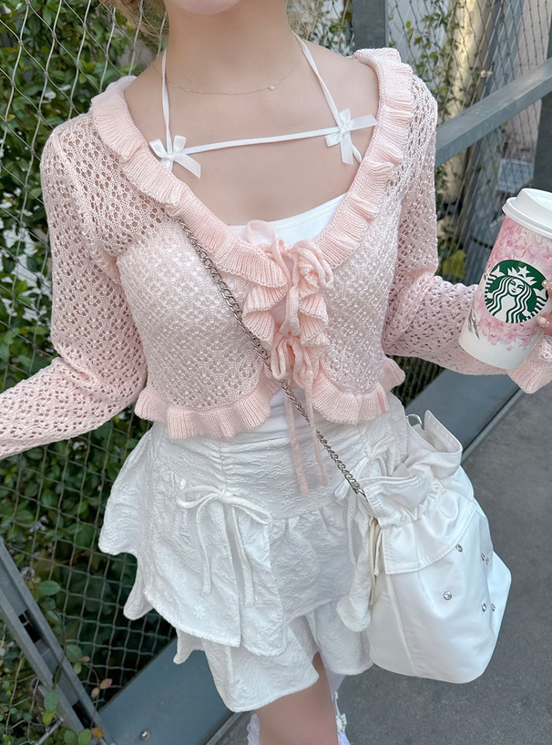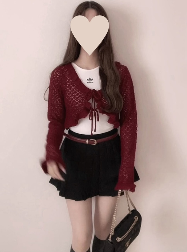 這件鏤空編織的短版針織罩衫,甜感爆棚♡
