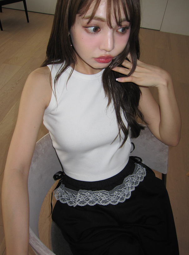 腰間拼接蕾絲荷葉+蝴蝶結綁帶設計