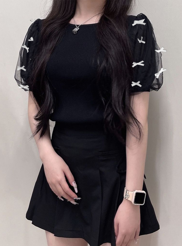 用泡泡袖+輕紗結合小蝴蝶結點綴,日雜感滿滿!
