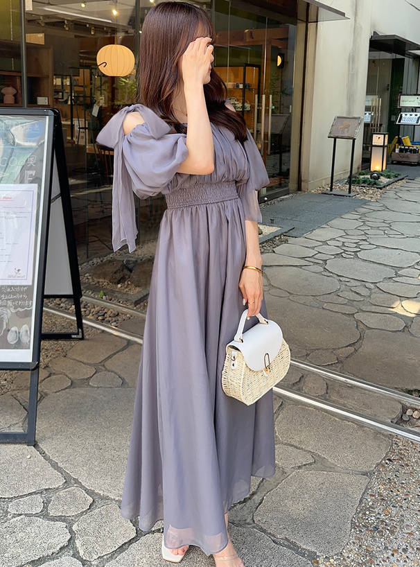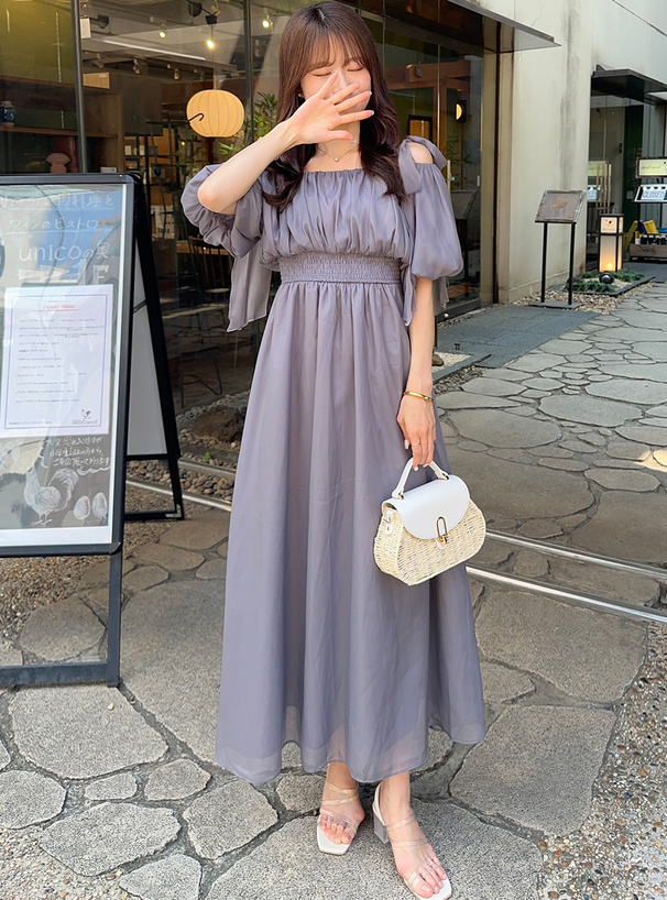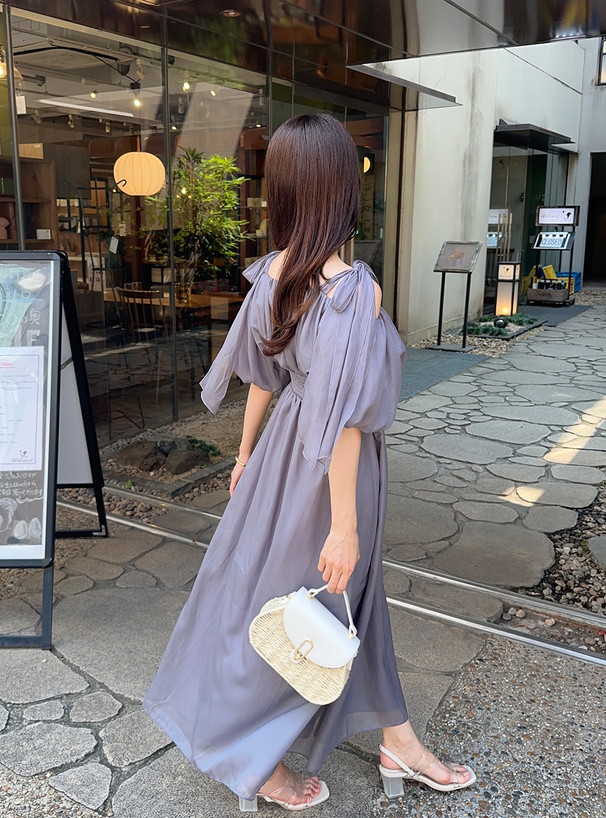 垂墜感滿分的澎袖與蝴蝶結肩帶設計超吸睛