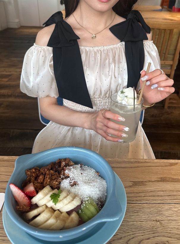 肩帶是大蝴蝶結設計,視覺上超吸睛
