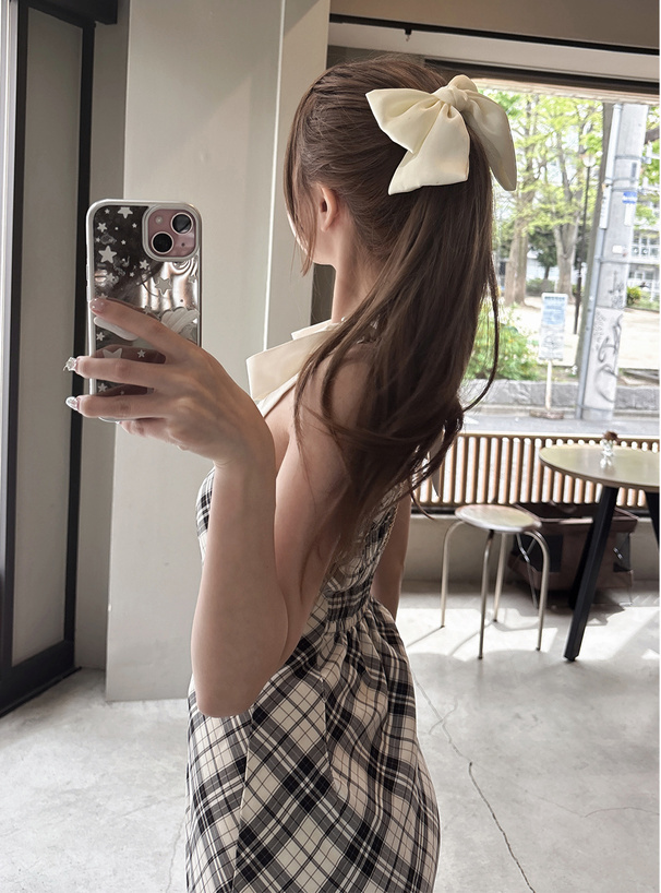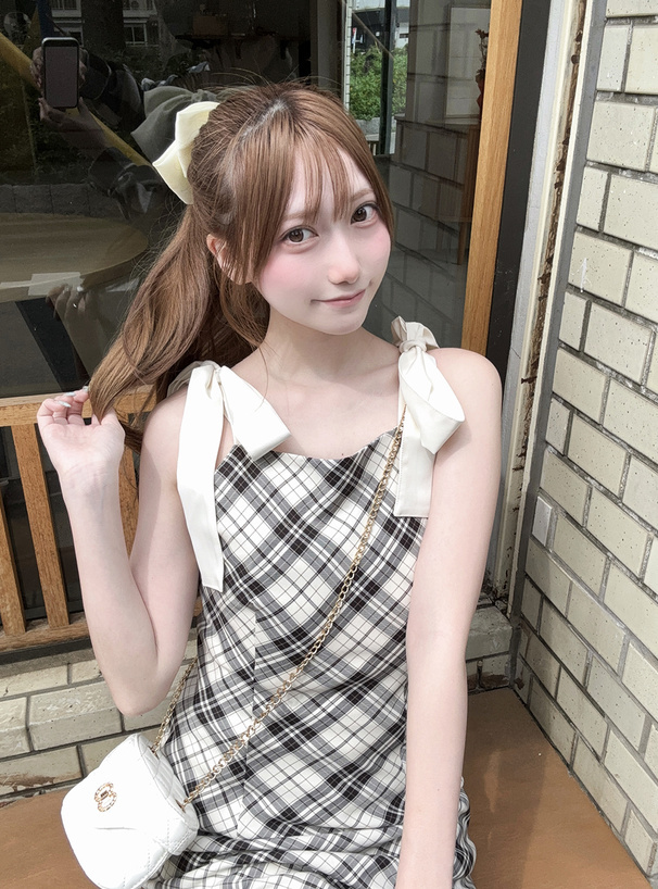 肩帶以綁帶蝴蝶結點綴,甜美中又不失個性