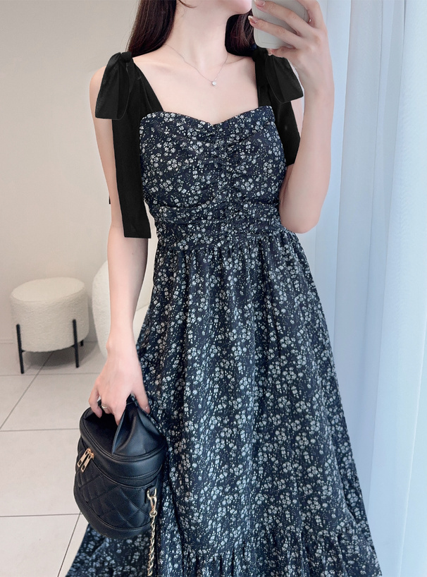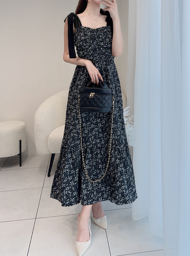 輕盈花卉布料隨步伐展現自然垂墜感