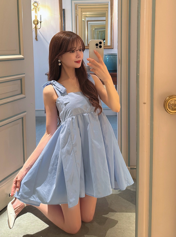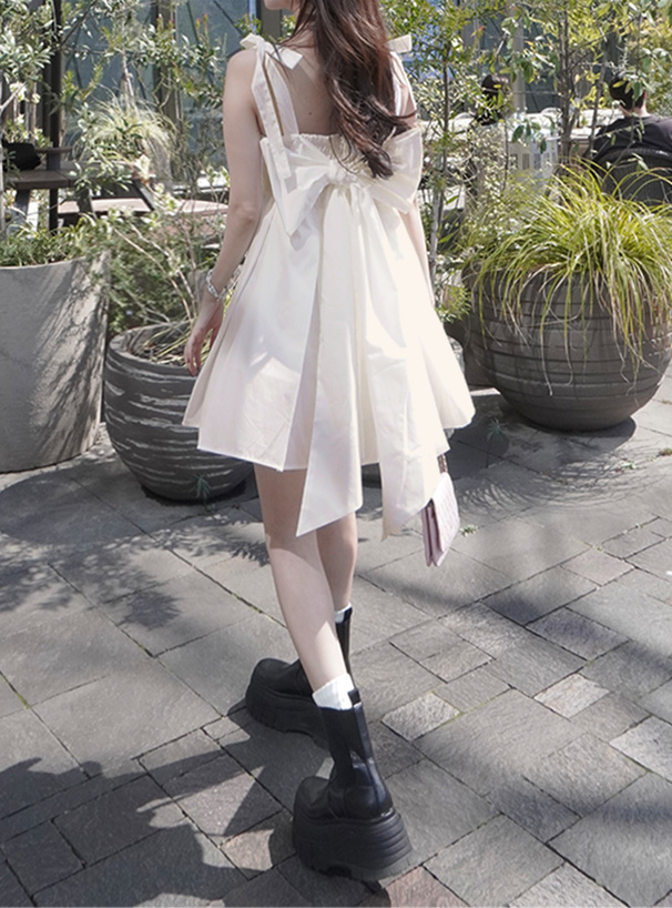 蓬蓬的A字剪裁搭配背後超吸睛的大蝴蝶結