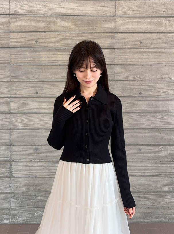 上身為微挺感的針織開襟衫
