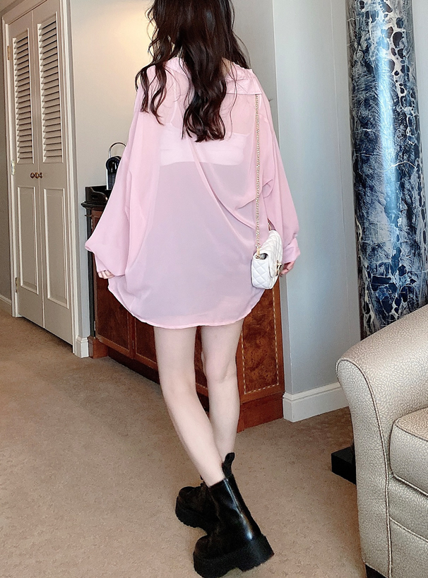 這款透肌感寬版落肩襯衫