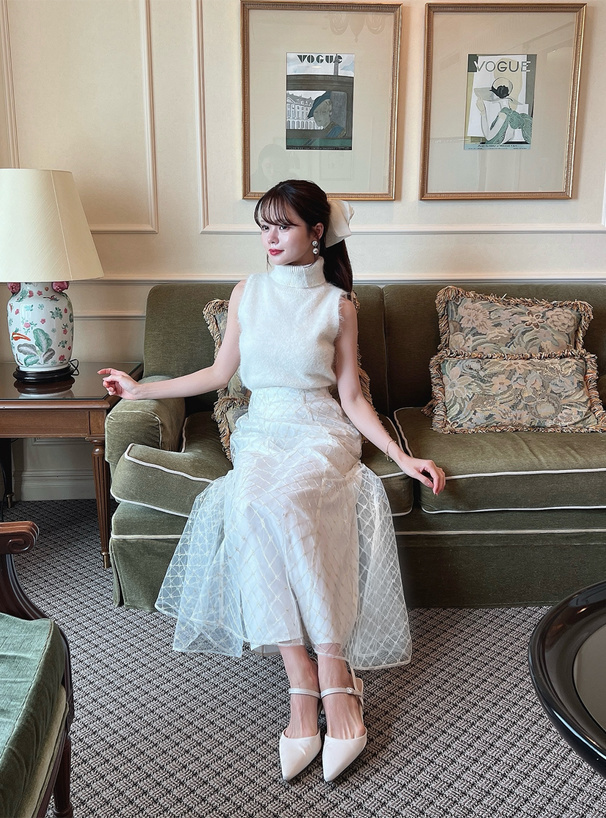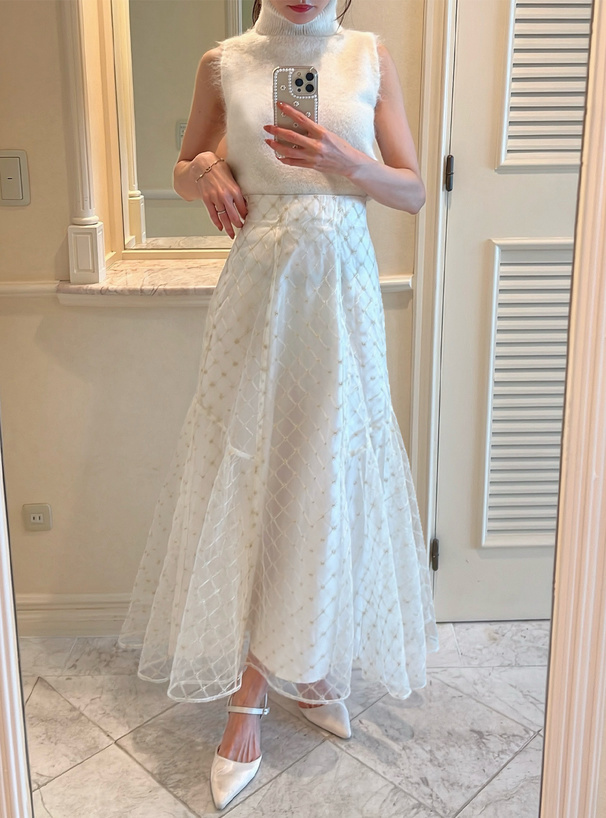 柔軟的網紗加上細緻的金色格紋與點點亮片