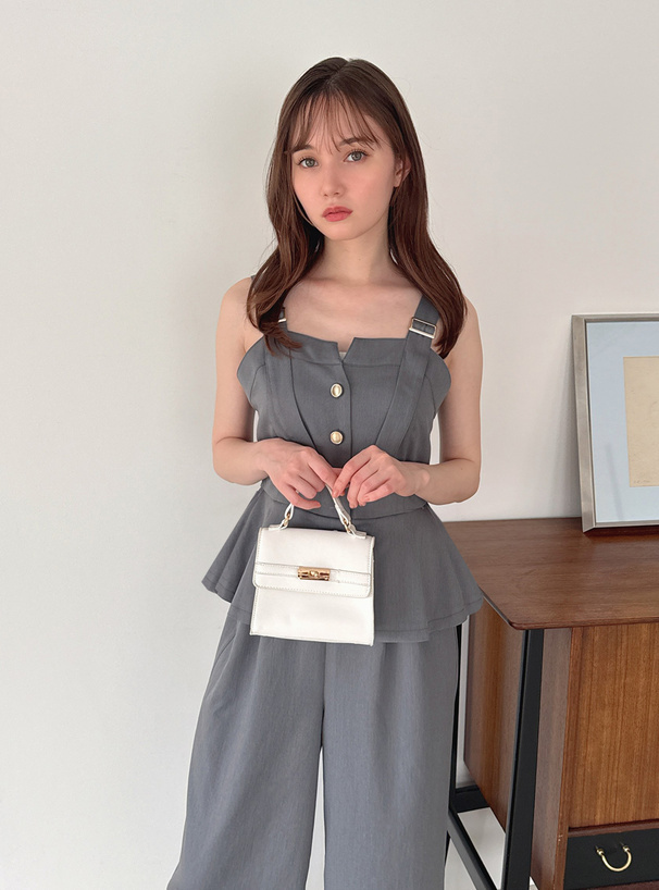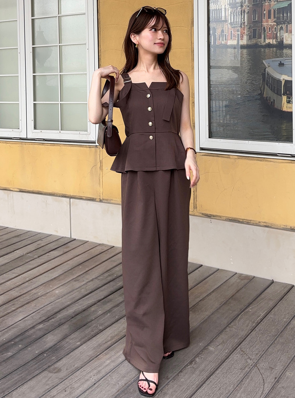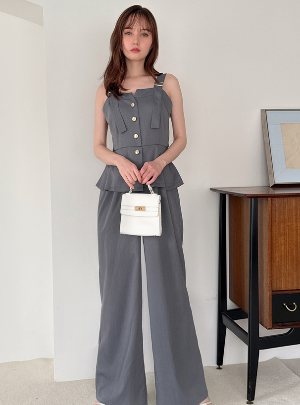 腰部荷葉切換搭配半寬褲管,打造修長比例