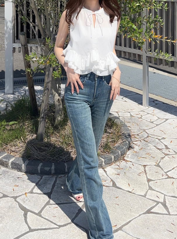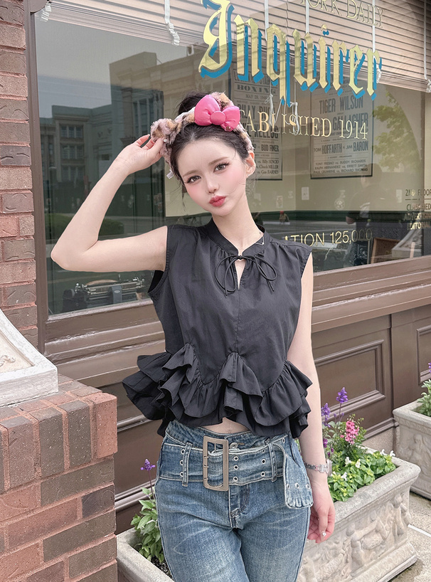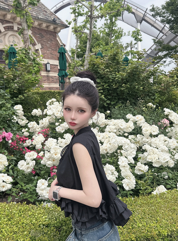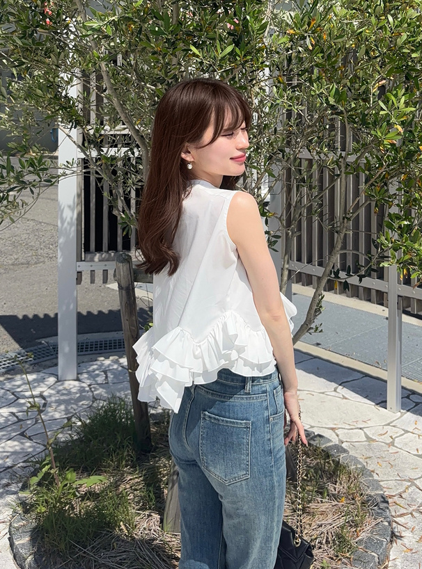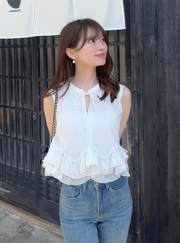 這件是自帶浪漫感的荷葉邊無袖上衣