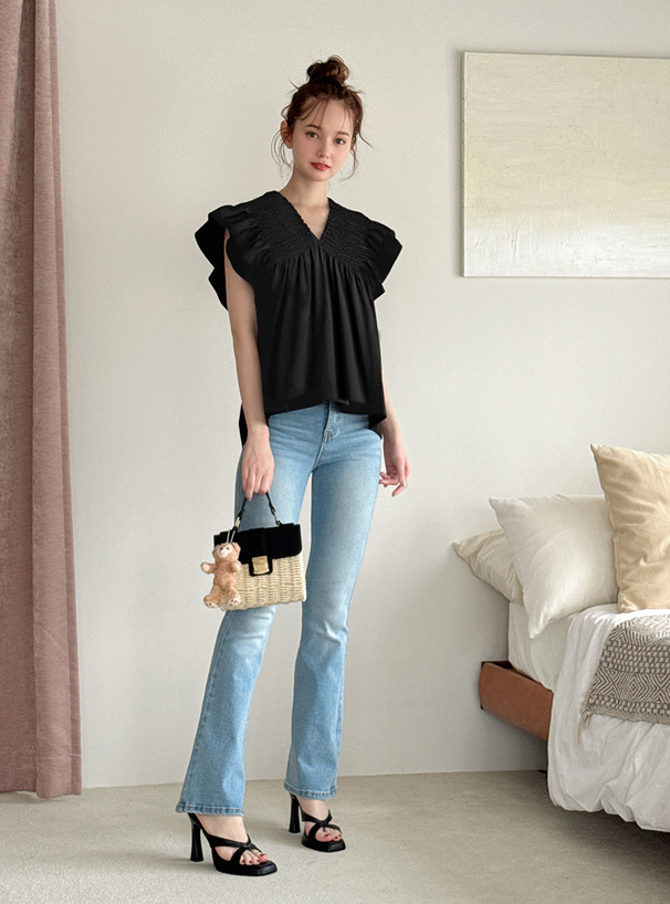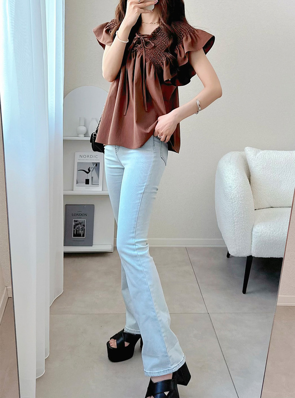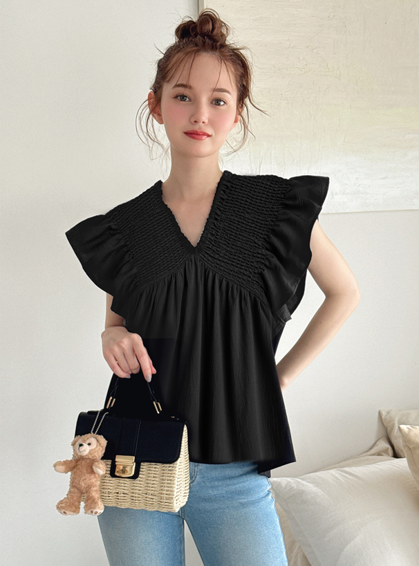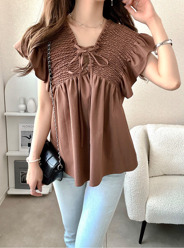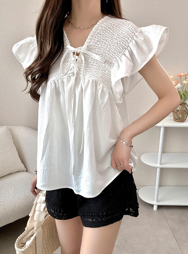 尺寸 (CM):衣長60/胸寬50/肩寬35/袖荷葉邊長8.5