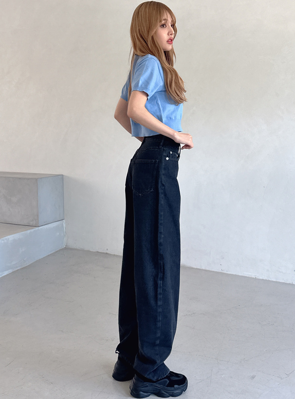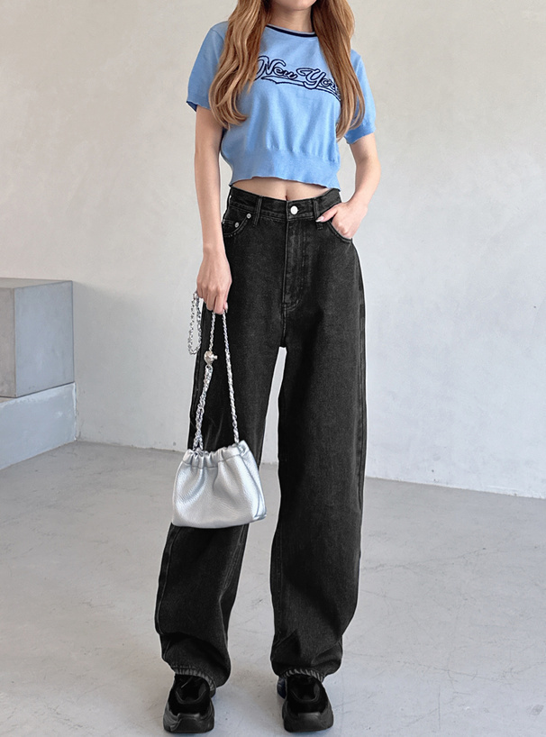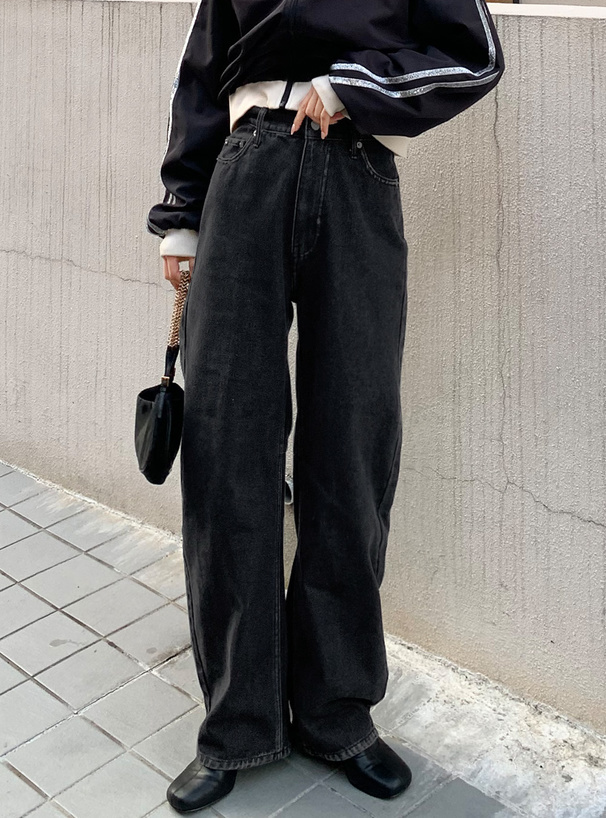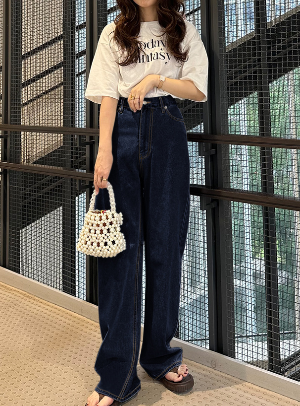 這款牛仔褲採用厚實帶挺度的丹寧布料
