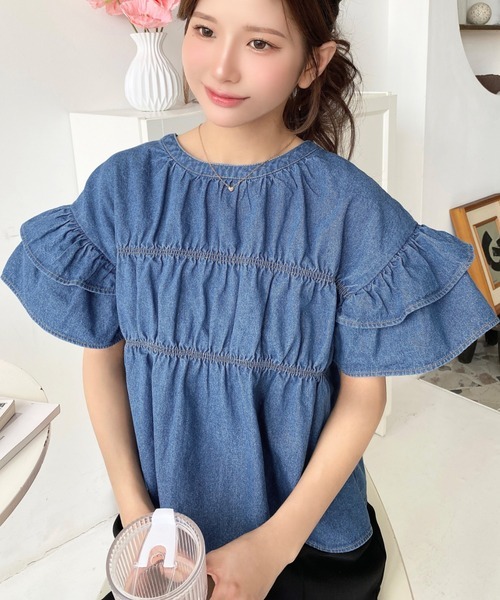 M:胸寬46/肩寬49/衣長54/袖長14.5/下擺圍145.5